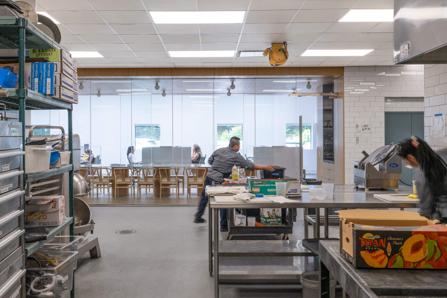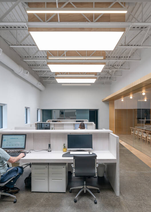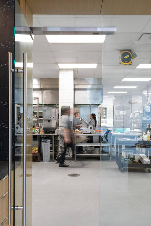 Text description provided by the architects. Norwalk, CT, USA - Abruzzo Bodziak Architects (ABA) has designed an innovative culinary center that reimagines post-pandemic work and production spaces within an underutilized facility in Norwalk, Connecticut. After taking over a vast kitchen and warehouse originally designed for large-scale food service, ABA's client—a team of cooking and event planning professionals known for innovative cuisine, bespoke presentation techniques, and an award-winning cookbook—approached the Architects with what they described as a "happiness project." Their goal was to attract both current and potential employees back to in-office work post-pandemic by transforming their new space into a welcoming, light-filled workplace for planners and chefs alike, and to craft an immersive experience for their own clients.