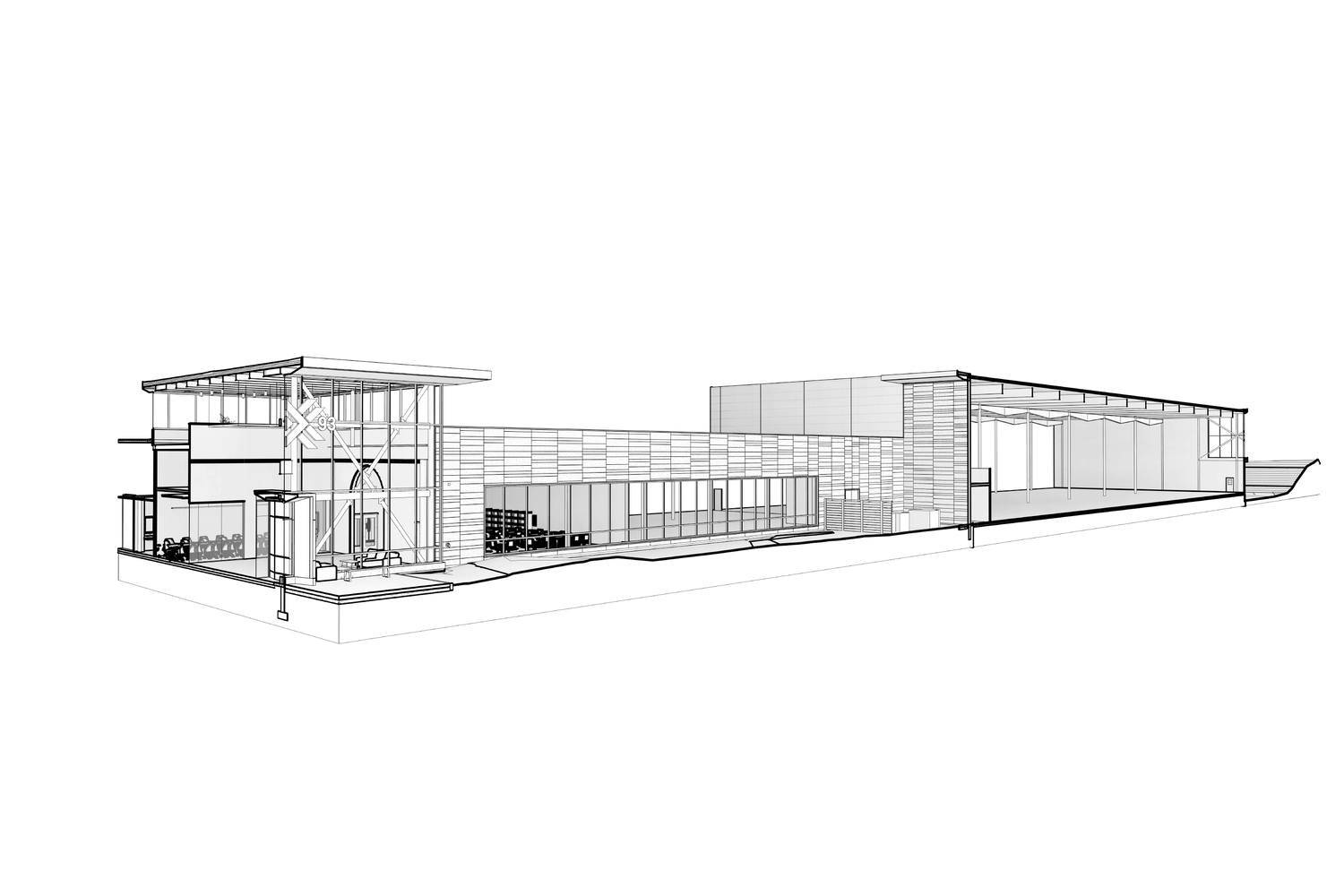 该项目的初始阶段涉及将建筑剥离到其核心元素:楼板、钢柱和屋顶。在这次干预之前,该建筑集办公室、实验室和仓库于一体,表面覆盖着凹陷和损坏的金属板,入口处有过时的建筑混凝土砌块(CMU)。杂草丛生的景观遮蔽了建筑,有限的窗户只允许最小的自然光穿透内部。内部空间就像一个由隔间和走廊组成的令人沮丧的迷宫,完全没有自然光。
