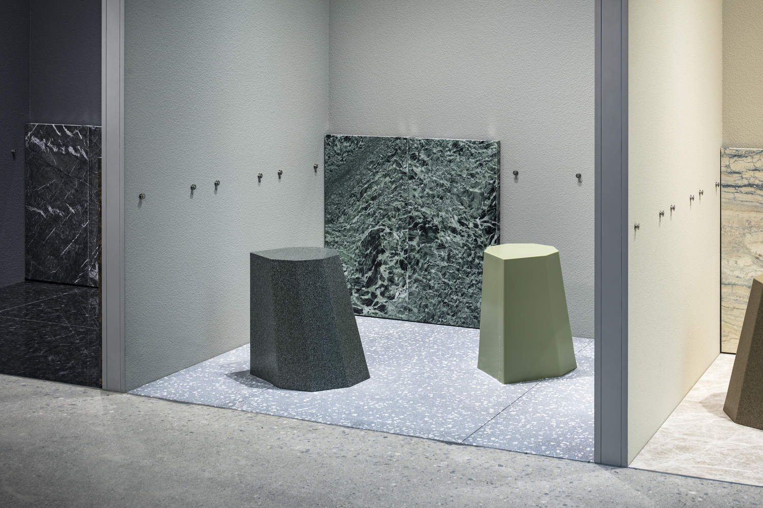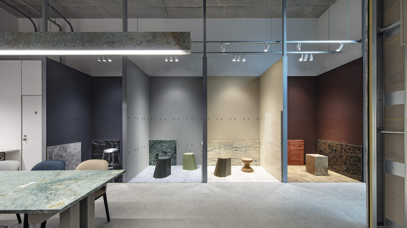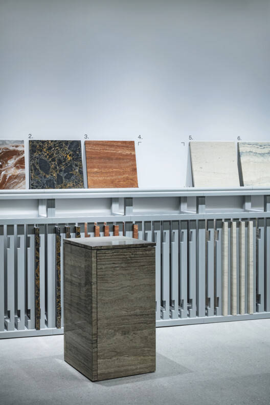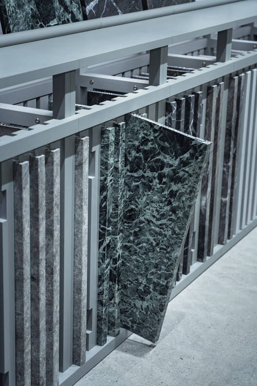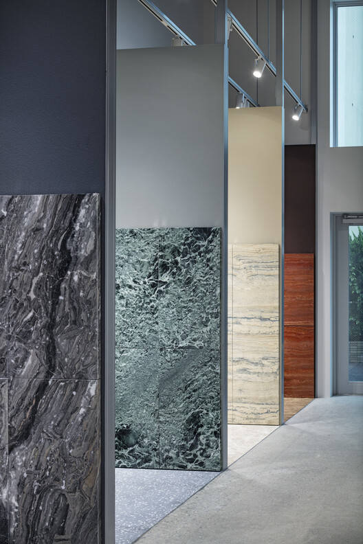 Text description provided by the architects. To showcase and display the flexibility of the new, lightweight "uni Marble Panel" from Yabashi Marble, an architectural stone company founded in 1901, we proposed a showroom with a specific system and environment, that allows users to freely reconfigure the space and test out different variations and material combinations.