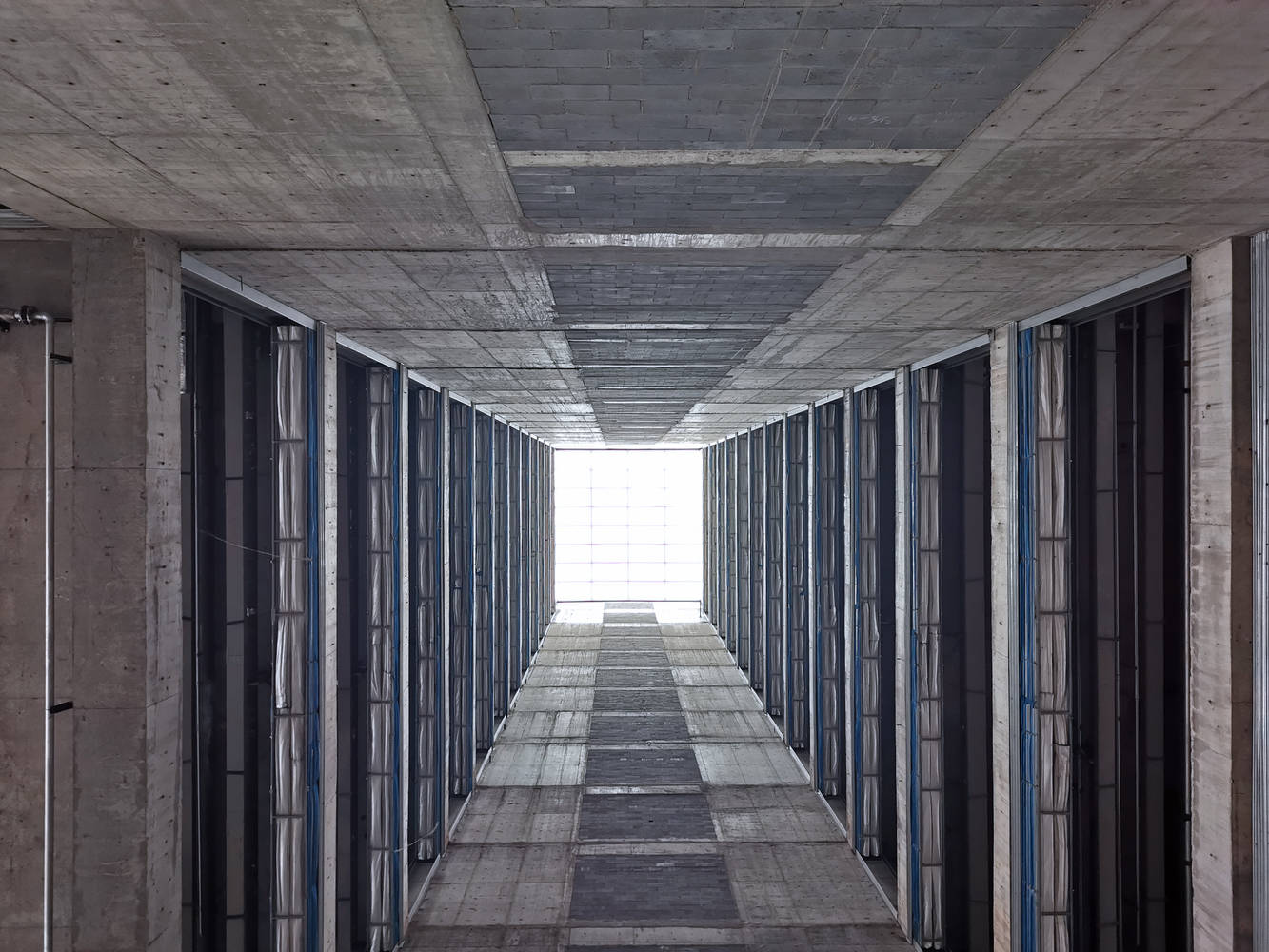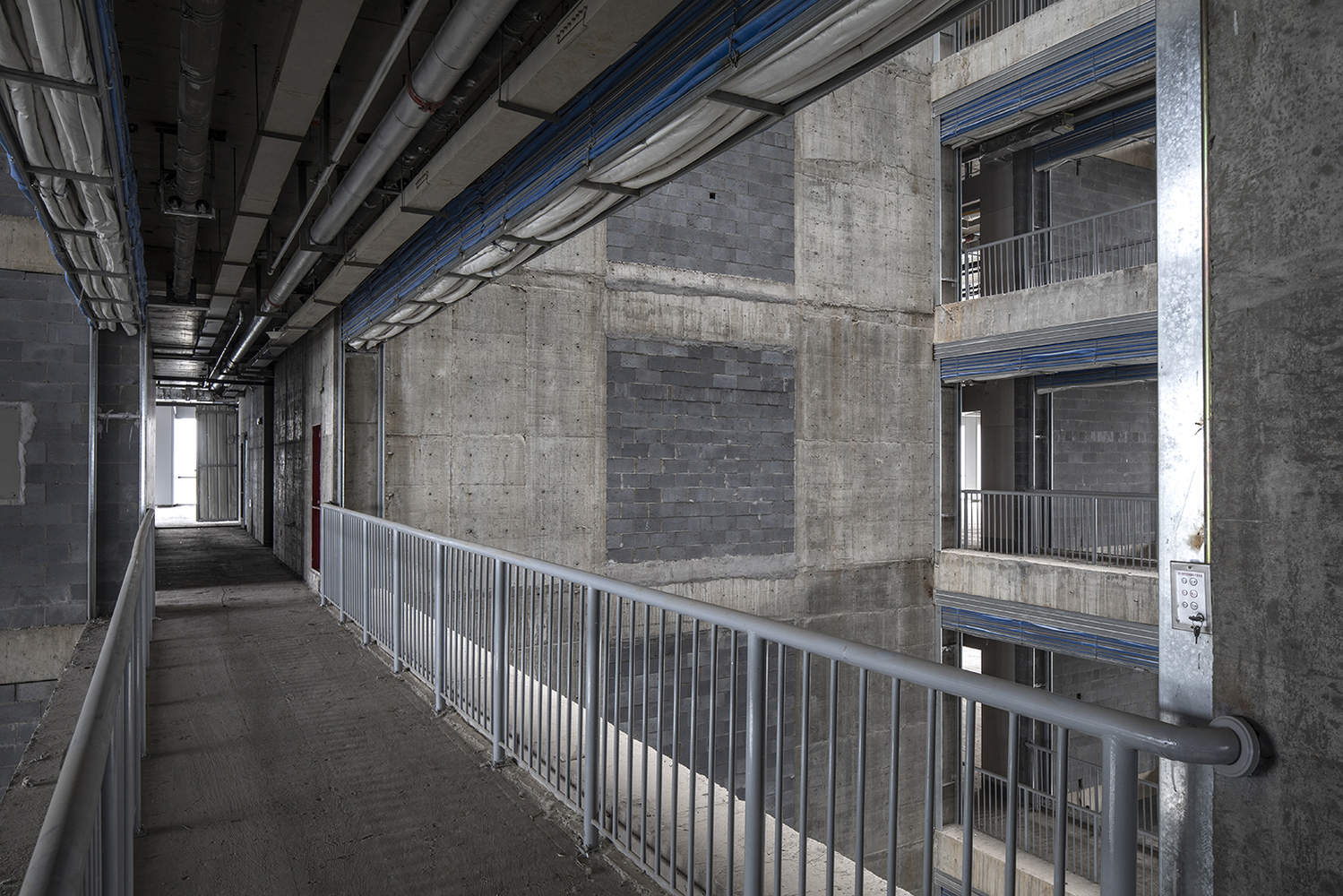 >无梁钢筋混凝土结构系统,具有中心核心和外围柱,创造了一个完全灵活的开放空间,便于进一步划分。没有横梁,我们能够降低地板高度,但不能降低天花板高度,在建筑高度限制内增加一层。