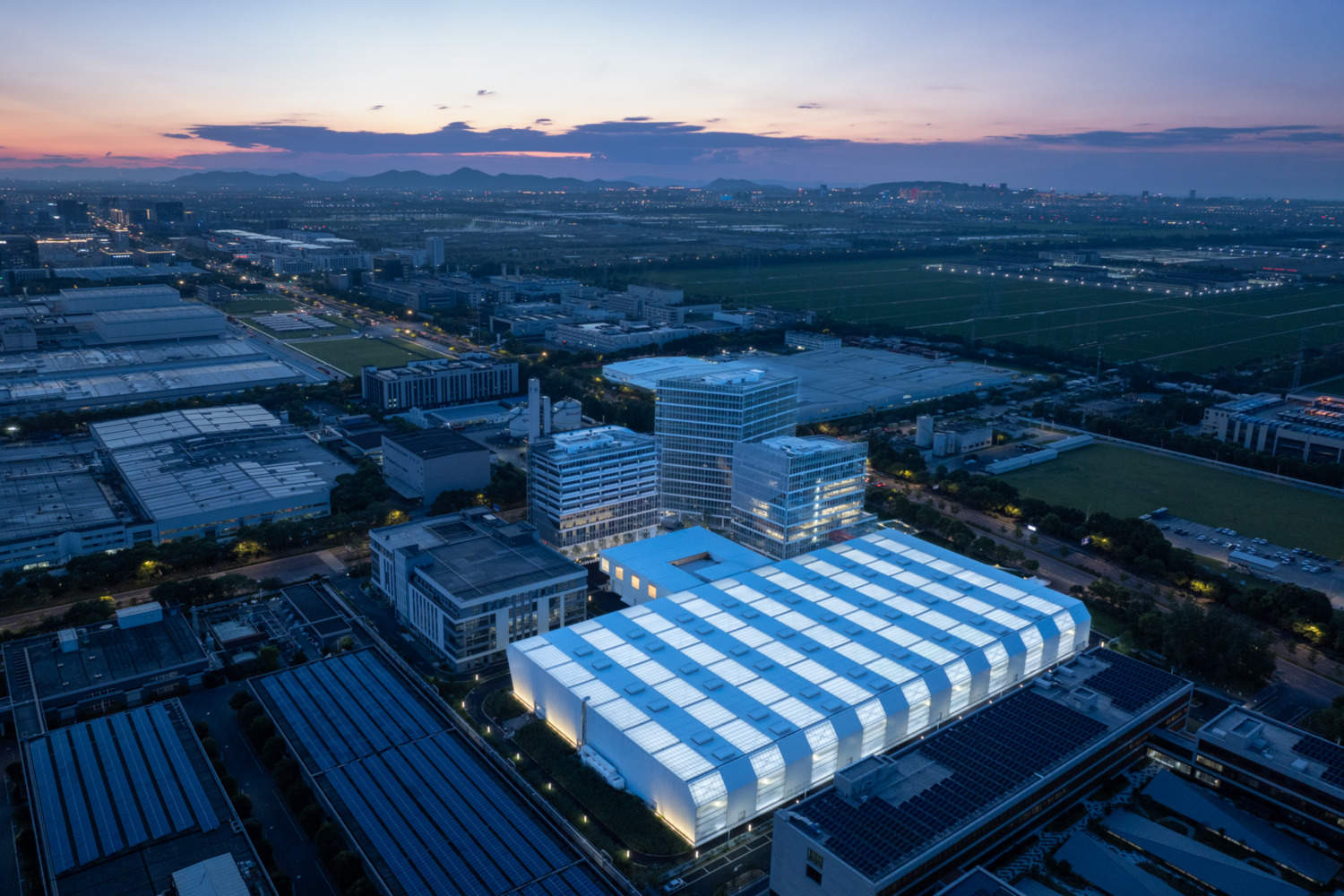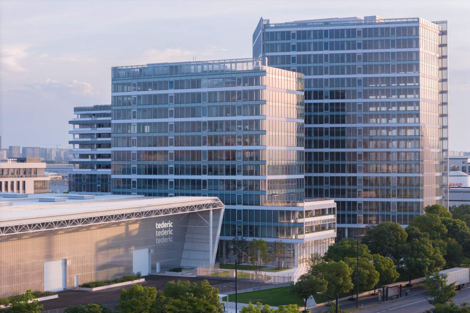 Text description provided by the architects. This project serves as the Tederic International Center, located in Qiantang District, Hangzhou, Zhejiang Province, China (Hangzhou Economic and Technological Development Zone), bringing together a world-class cluster of smart manufacturing industries. The campus spans a total site area of 33,335 square meters, with a total built-up area of 75,117 square meters. It comprises three buildings and a smart factory. It integrates various functions, including office spaces, hotels, and commercial facilities, capable of accommodating thousands of people for work and daily life. The project aims to strike a new balance between open commercial spaces and enclosed manufacturing factories.
