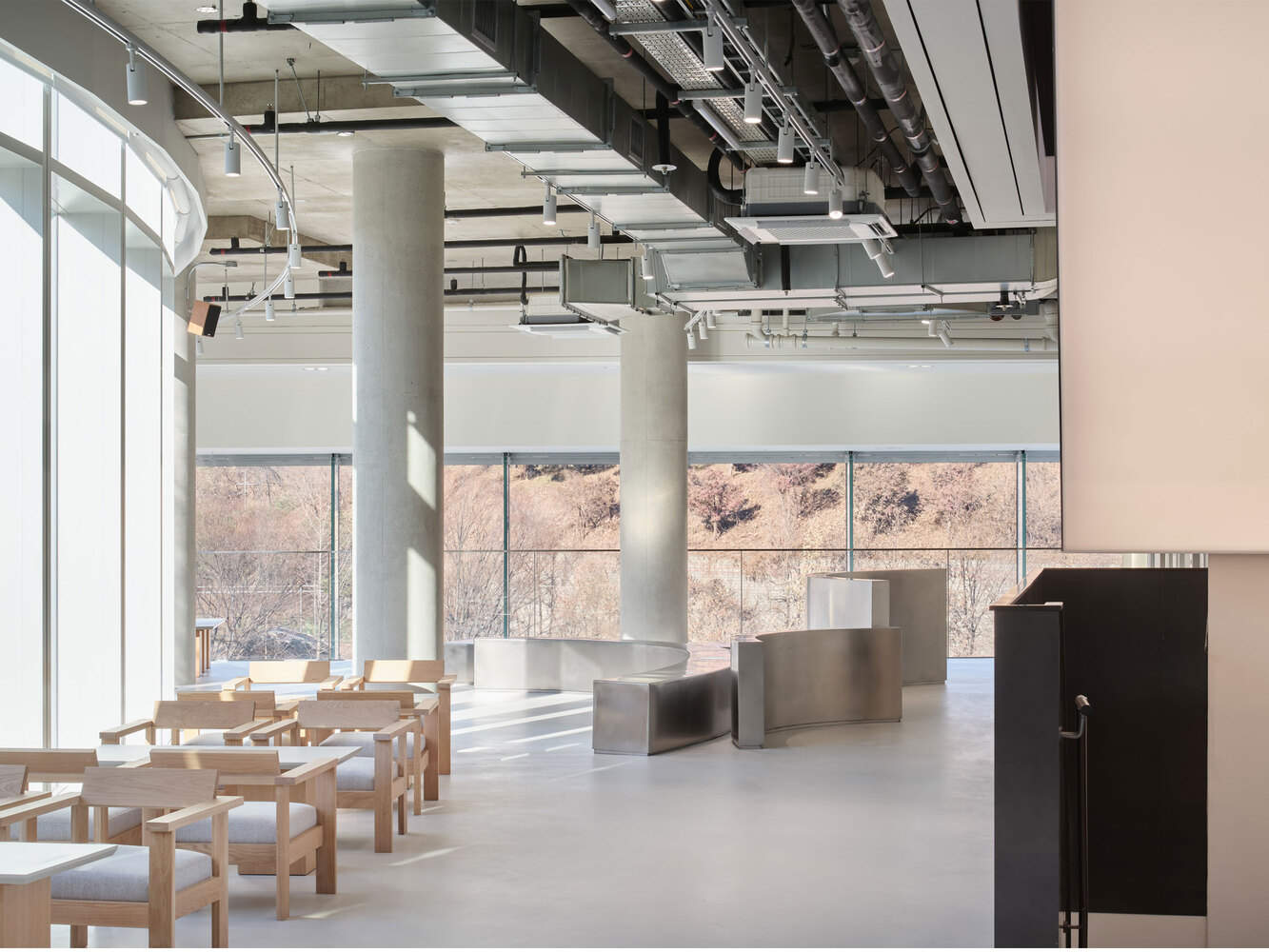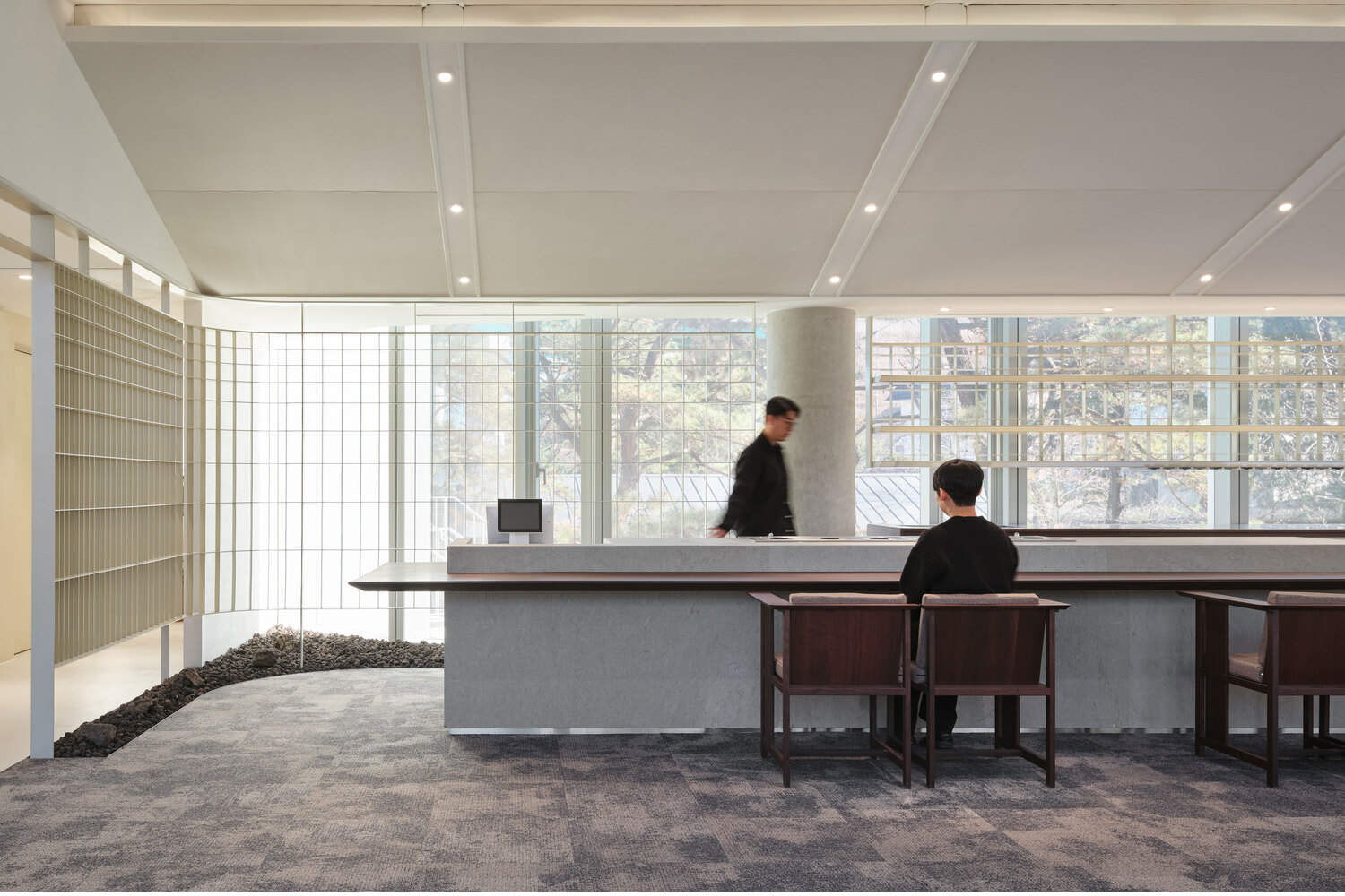 " the place & seat " It is an act of more than simply occupying space; it is about embracing a unique moment and staying in that place. When present there, the surrounding air, landscape, and sounds merge to create a complete experience, and fully enjoying that time becomes the essence of sensing and appreciating the space. Furthermore, in harmony with architecture and nature, we aim to stay quiet, without conflict, respecting time through nine distinct meanings. This approach connects people with nature and reflects our purpose of existing together in mutual harmony.