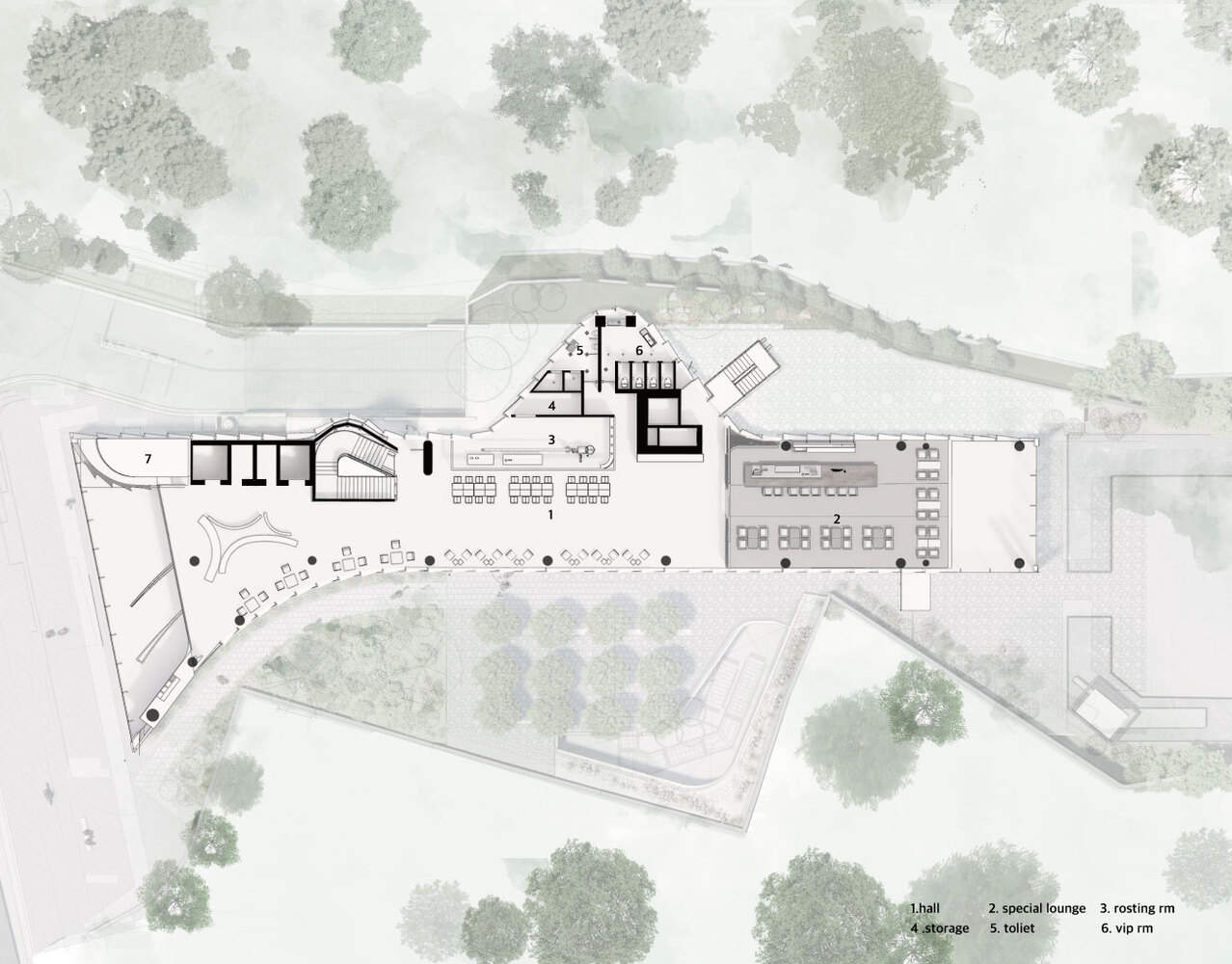 “位置和座位”这不仅仅是一种占用空间的行为;这是关于拥抱一个独特的时刻并留在那个地方。当存在于那里时,周围的空气、景观和声音融合在一起,创造出一种完整的体验,充分享受那段时间成为感知和欣赏空间的精髓。此外,为了与建筑和自然和谐相处,我们的目标是保持安静,没有冲突,通过九种不同的含义尊重时间。这种方法将人与自然联系起来,反映了我们在相互和谐中共存的目的。