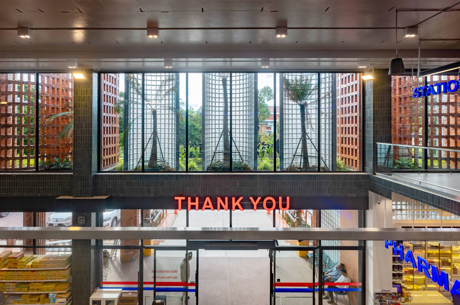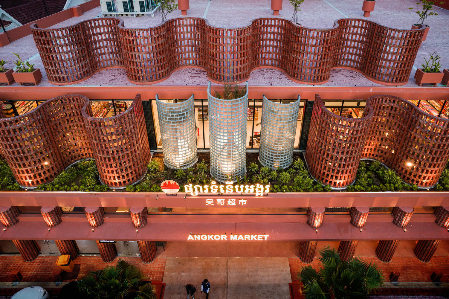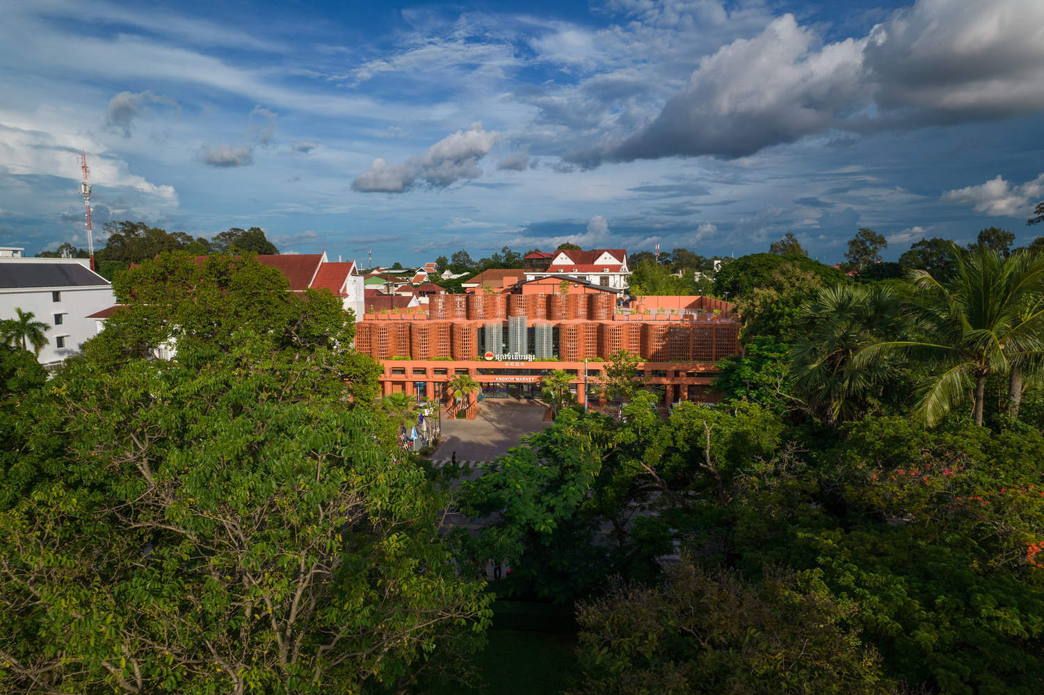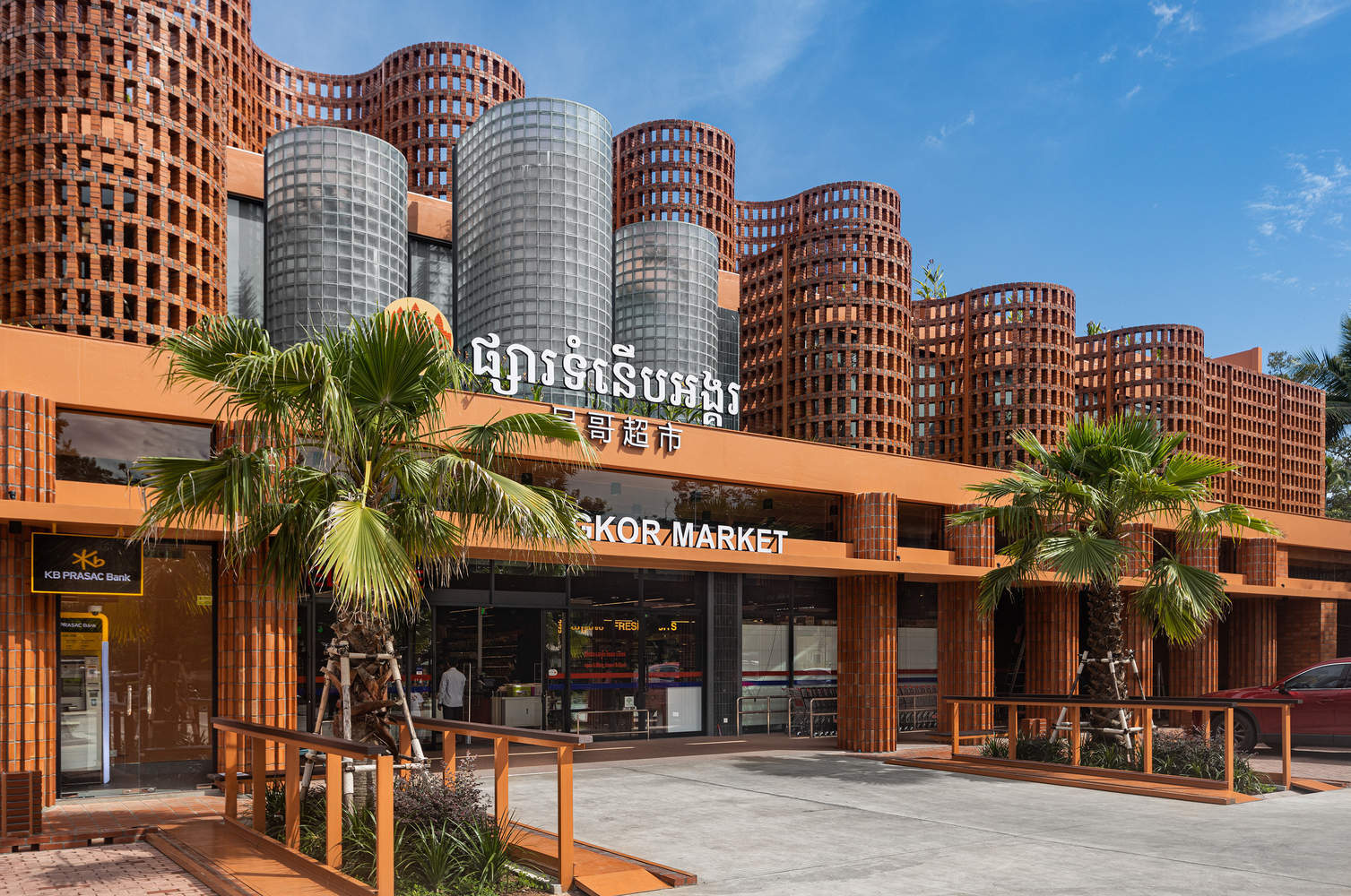 Text description provided by the architects. Situated on Preah Sihanouk Ave, linking the northern route that leads to Angkor Wat, a UNESCO World Heritage Site, and downtown of Siem Reap, Angkor Market is a two-story red brick building, surrounded by a century's worth of cultural heritage Raffles Grand Hotel d'Angkor, Angkor National Museum and Amansara Resort. We aim to activate a gap in the urban fabric and create a new gathering spot while maintaining the harmony of the existing neighborhood. The market comprises grocery stores, pharmacies, stationery, and household appliances that contribute to making people's shopping experiences pleasurable.
