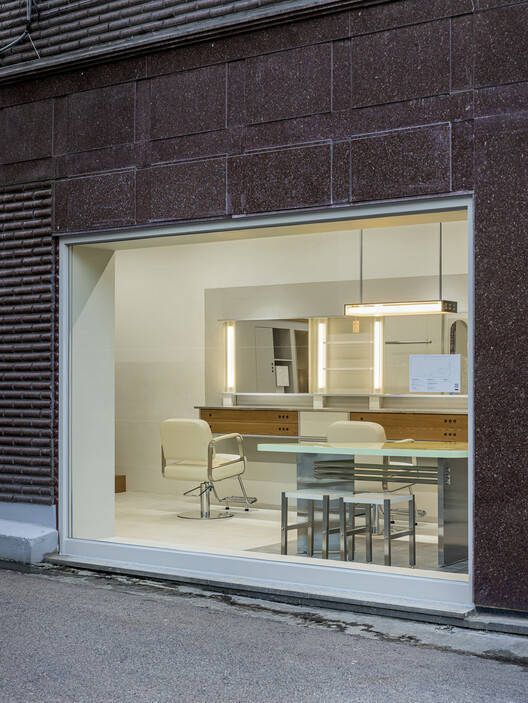 "This is not a furniture showroom" -These design elements make the space look like a furniture showroom from the outside, stimulating customers' visual curiosity, while providing makeup services inside, enabling a unique spatial experience.