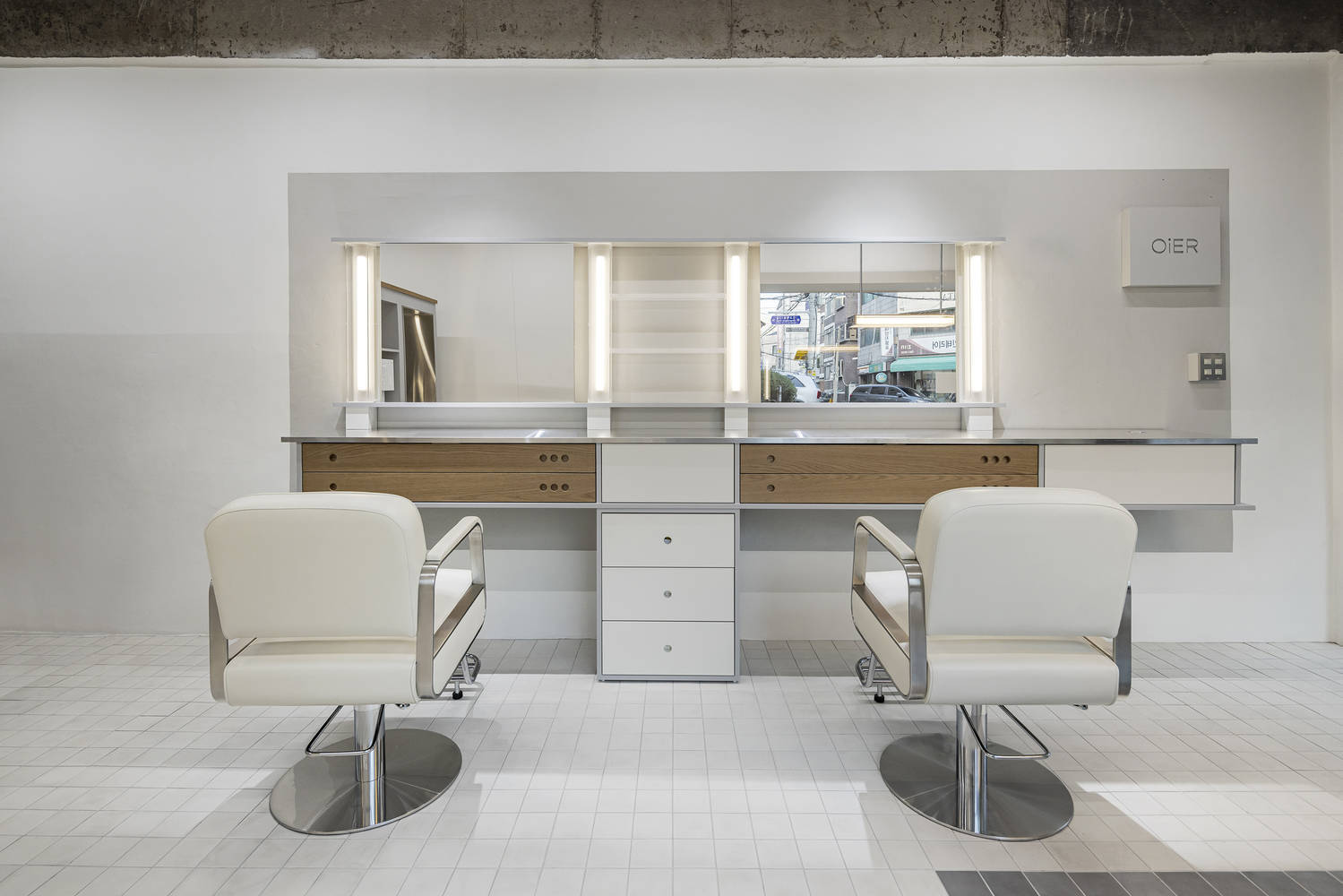 Text description provided by the architects. OiER is a cozy 23-square-meter space located in a residential area near Gunja Station, offering a special makeup experience to every client.