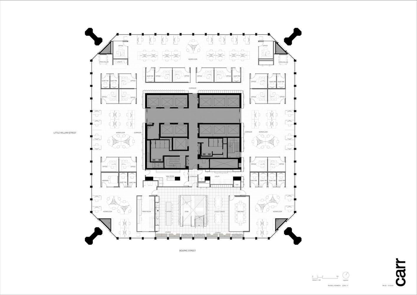 Expressing an expertise -The fit-out for leading law firm Russell Kennedy is a contemporary and inclusive workplace that supports the future aims of the business. The textural and warm interiors represent the law firm's values. Set within the newly refurbished 500 Bourke Street tower in Melbourne's CBD, the new workplace for Russell Kennedy is spread across four floors, with a design that reinforces and supports the law firm's authentic and inclusive positioning in the market. Deciding that its current office no longer supported its future workplace strategy, Russell Kennedy included Carr in the building selection and analysis of suitable sites in Melbourne's CBD. Through an assessment of factors, such as floor plate efficiency, daylight amenities, and sustainability, a detailed report was prepared with recommendations to ensure the chosen building upheld and advanced Russell Kennedy's vision for its future workplace.