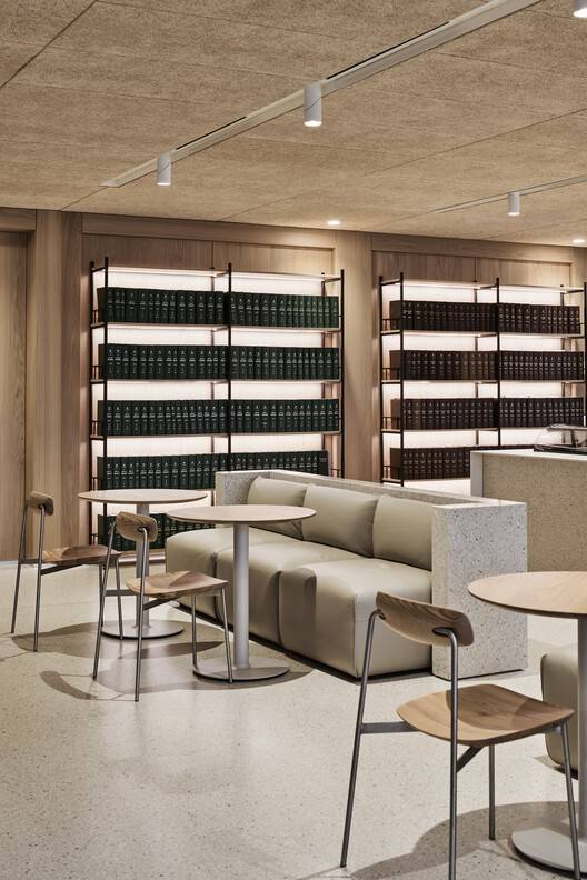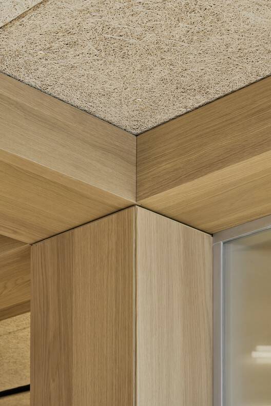 在四层楼中,丰富的设施,如咖啡馆、图书馆、家长和祈祷室,以及基本上没有等级的工作站,都强调了多样性和包容性。考虑到模块化设计,办公室和安静的房间隔间可以灵活规划,以适应未来的重新配置(如果需要)。与客户会议室的玻璃角不同,橡木柱连接了周围环境,并在整个空间中提供了视觉清晰度。同样,在典型的工作楼层上,建立了通往办公室和安静房间模块的坚实角落。细木工制品上的表达手柄进一步增强了整体对比感,确保了支持无障碍设计的设计超越了标准要求。