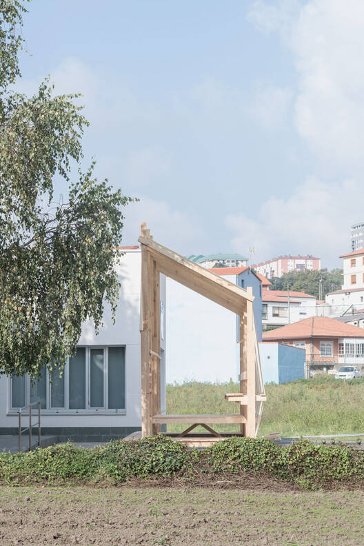 By the workshop's end, we had created a temporary installation—an experimental prototype standing directly on the ground without foundations. This project explored a dialogue between A Coruña's urban, industrial, and rural landscapes. It sought to mediate between the neighbors and their civic center and between an architecture disconnected from its geography and a new artifact aiming to establish functional or metaphorical relationships with the region's architectural identity.