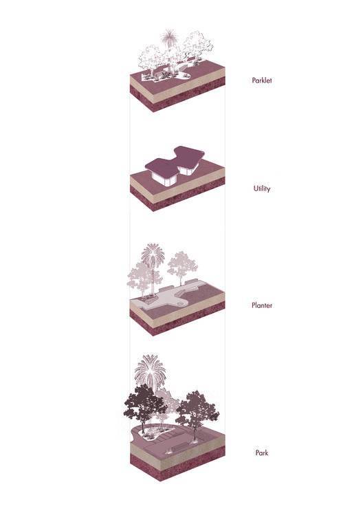 A set of formal operations on the typical warehouse was developed to address programmatic requirements, urban context, and development guidelines. These operations yielded a set of new typologies that established a subtle presence in the district. Some warehouses were rotated perpendicular to the street to create thoroughfares within the urban fabric. Others had portions of their facades hollowed out to connect the structures to the street sectionally. Additionally, a set of new, scaled-down sheds were inserted into the urban fabric to serve as F&B outlets and small shops that animate the street.