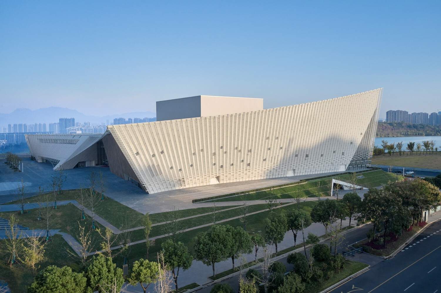 创新的材料运用:南昌大剧院的设计在材料选择上展现了创新与传统结合的精髓。建筑外立面采用中国白陶瓷百叶窗,灵感来源于当地特有的透明米瓷,这种材料不仅美观,还具有良好的遮阳效果,降低了建筑的冷却成本。内部则使用了防火染色竹材,这种材料既环保又具有良好的声学性能,为剧院的演出空间提供了理想的声学环境。这种对传统材料的现代诠释,不仅体现了对地域文化的尊重,也展示了建筑在可持续发展方面的努力.