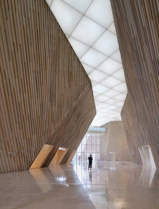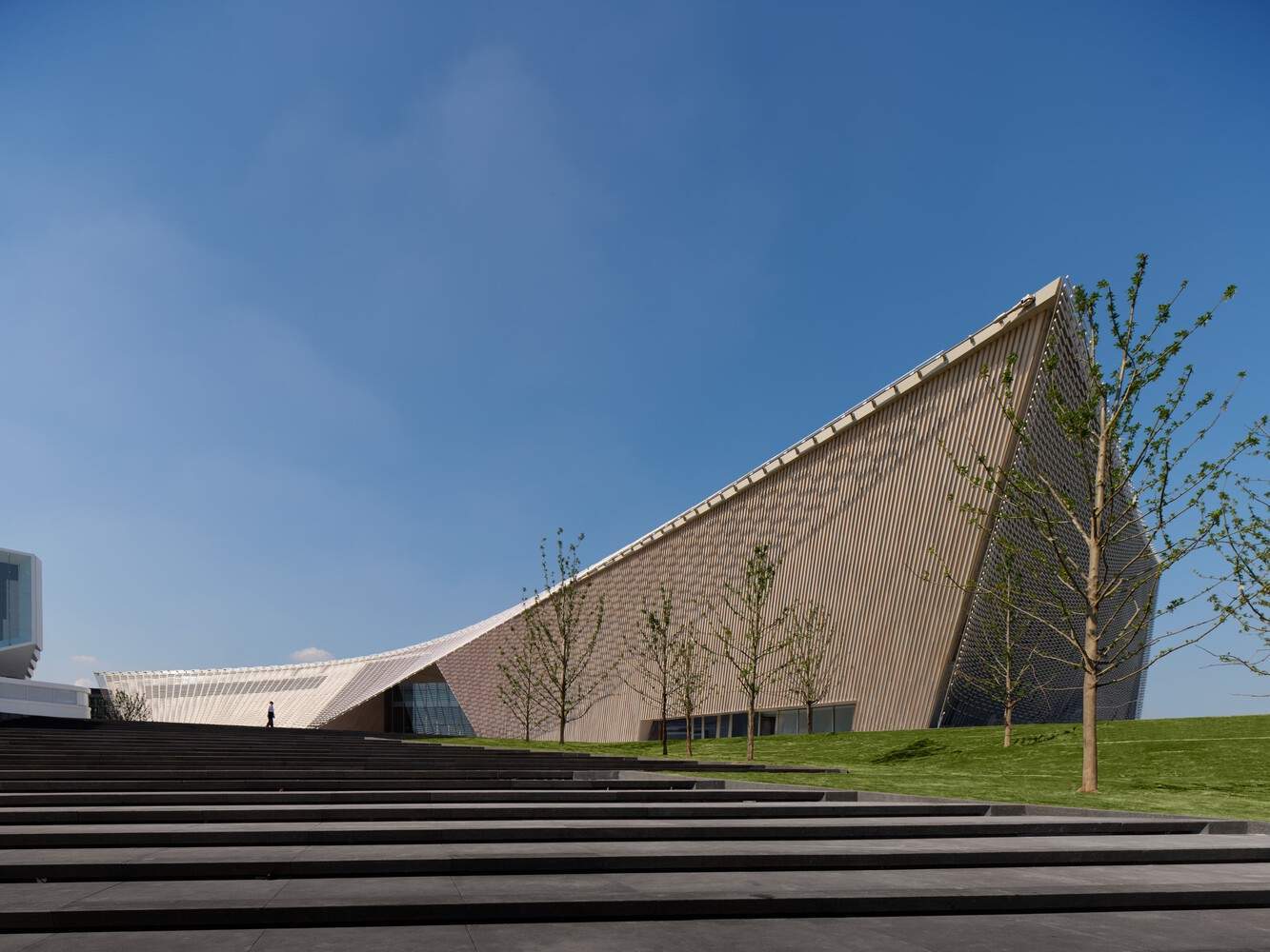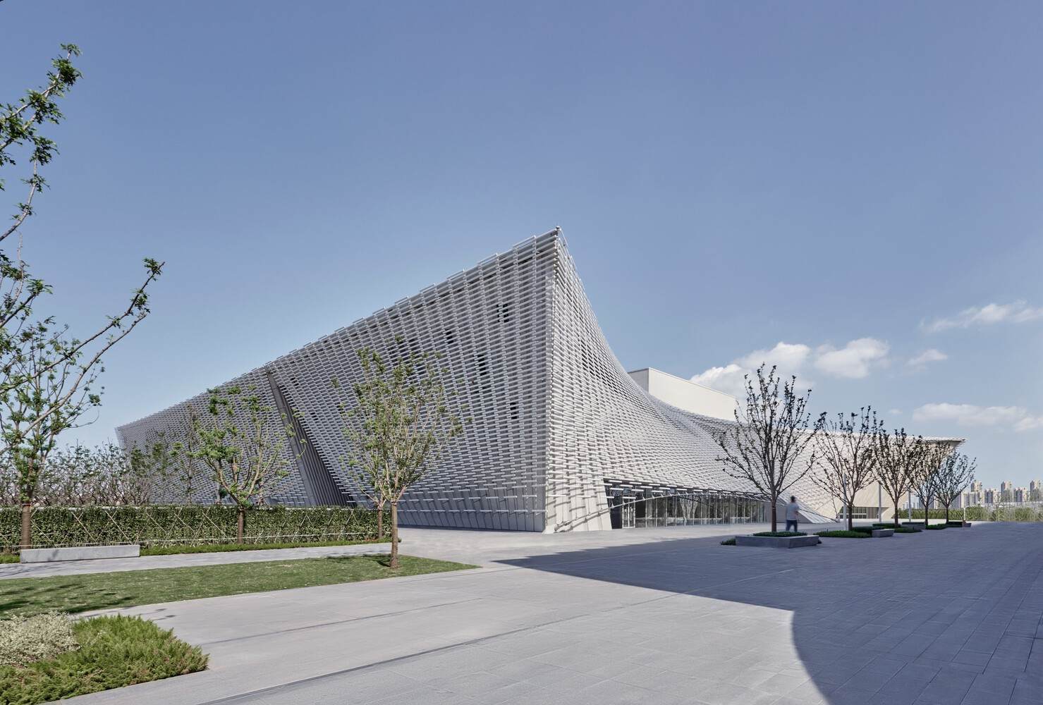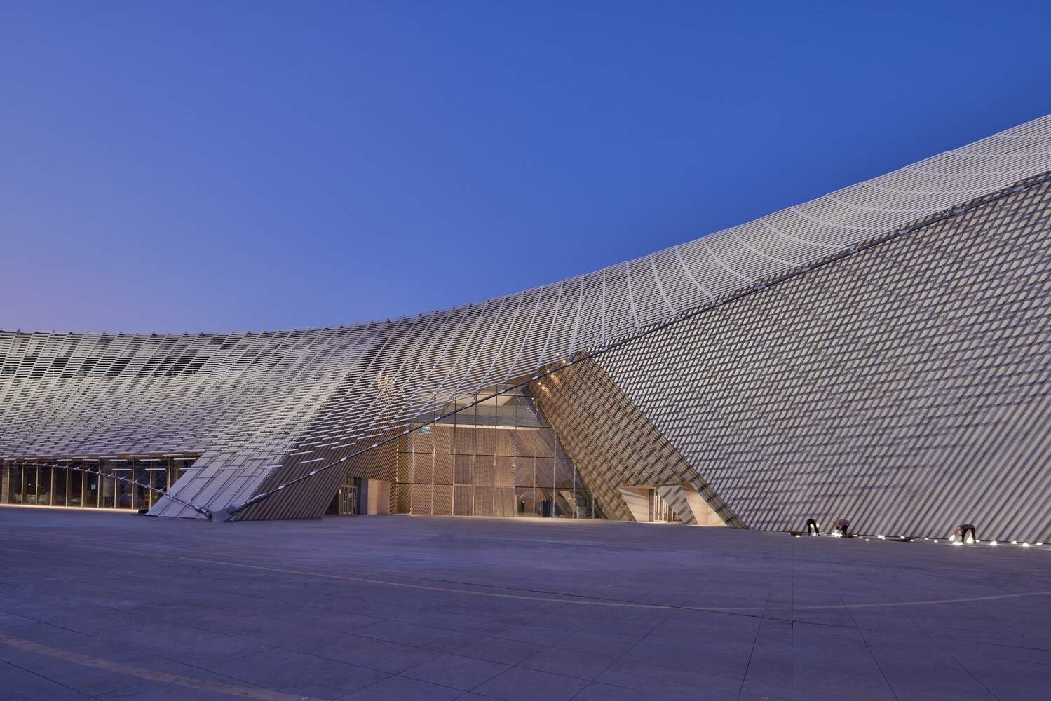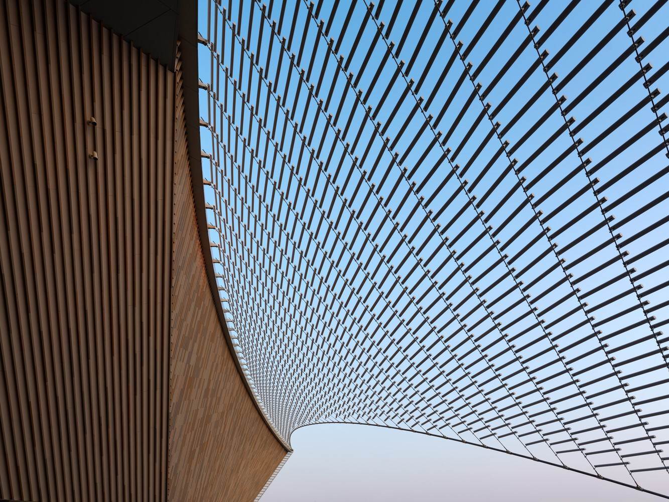 The building's design extensively incorporates ceramics and bamboo, renewable materials deeply rooted in Chinese tradition. The building is enveloped by a striking, airy 'veil' of China White ceramic louvres, inspired by the region's translucent rice porcelain. The bold, double-curved surfaces are based on advanced structural modelling and supported by steel cables.