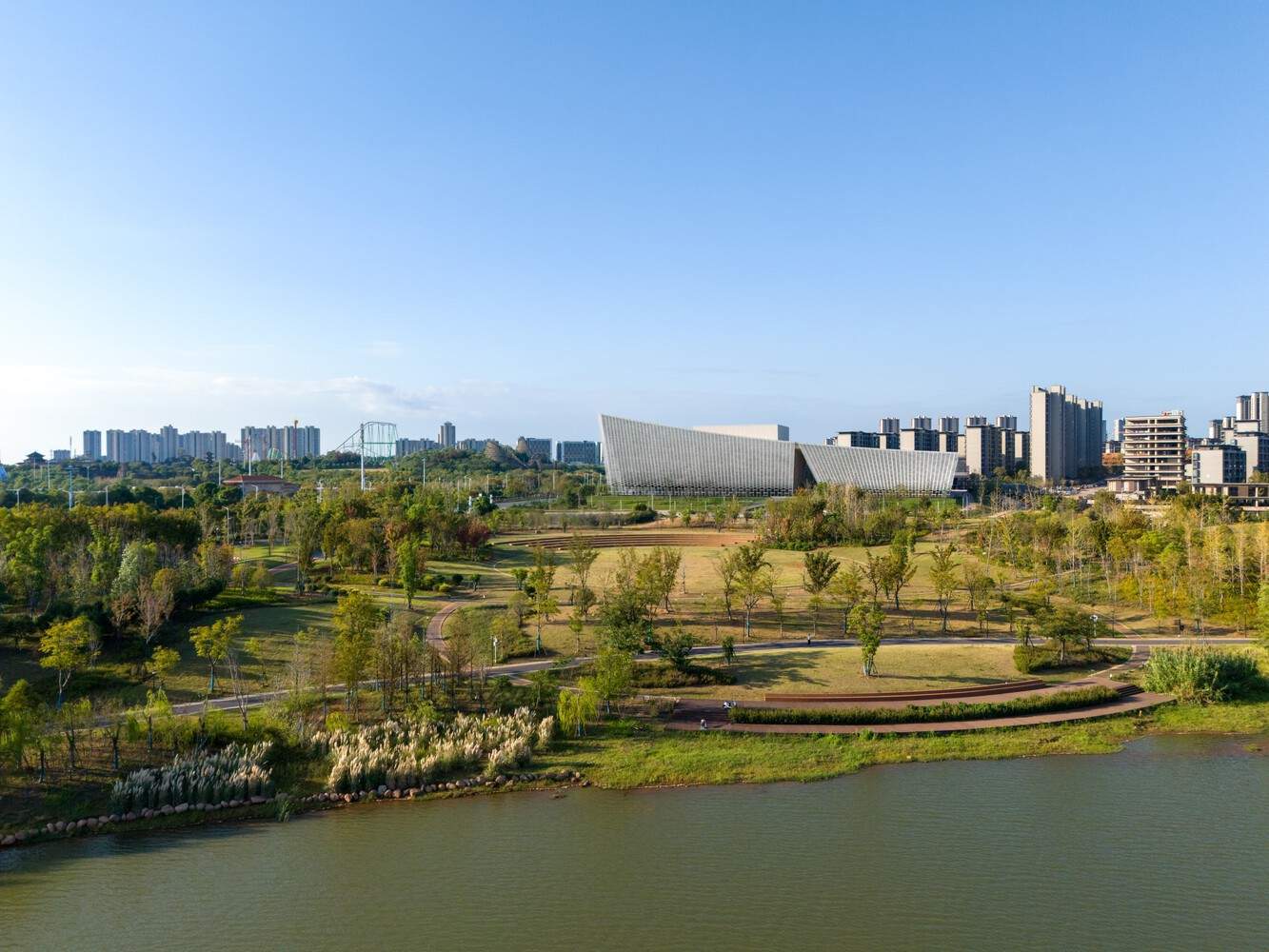 建筑与环境的和谐共生:南昌大剧院坐落在风景秀丽的九龙湖畔,其设计充分考虑了与周边环境的融合。建筑的多孔城市立方体形态,使其与九龙湖公园和未来的商业区紧密相连,形成一个开放的城市空间网络。建筑的屋顶设计为一个宽敞的户外剧场,与主入口的大型屋顶雨篷共同构成了一个活跃的城市焦点。此外,建筑的可持续设计,如太阳能集热器和雨水收集系统,也体现了对环境的尊重和保护,使建筑与自然环境和谐共生,成为南昌城市文化景观中的一道亮丽风景线.