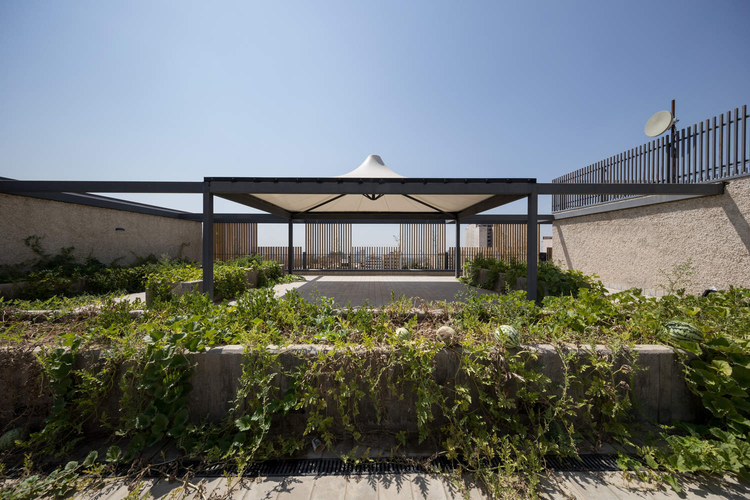 这种设计语言被扩展到屋顶,延续了分层透明和半透明的概念。屋顶不仅是一个功能空间,也是建筑与城市互动的一个组成部分,在提供景观、光线和空气的同时,保持一定程度的隔离。