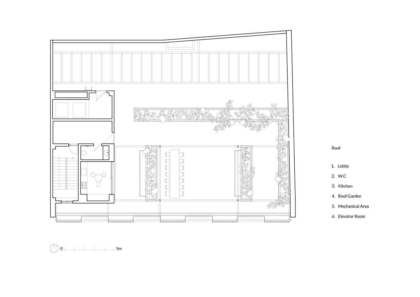 This design language was extended to the rooftop, continuing the concept of layered transparency and semi-transparency. The rooftop was not merely a functional space but an integral part of the building's interaction with the city, offering views, light, and air while maintaining a degree of seclusion.