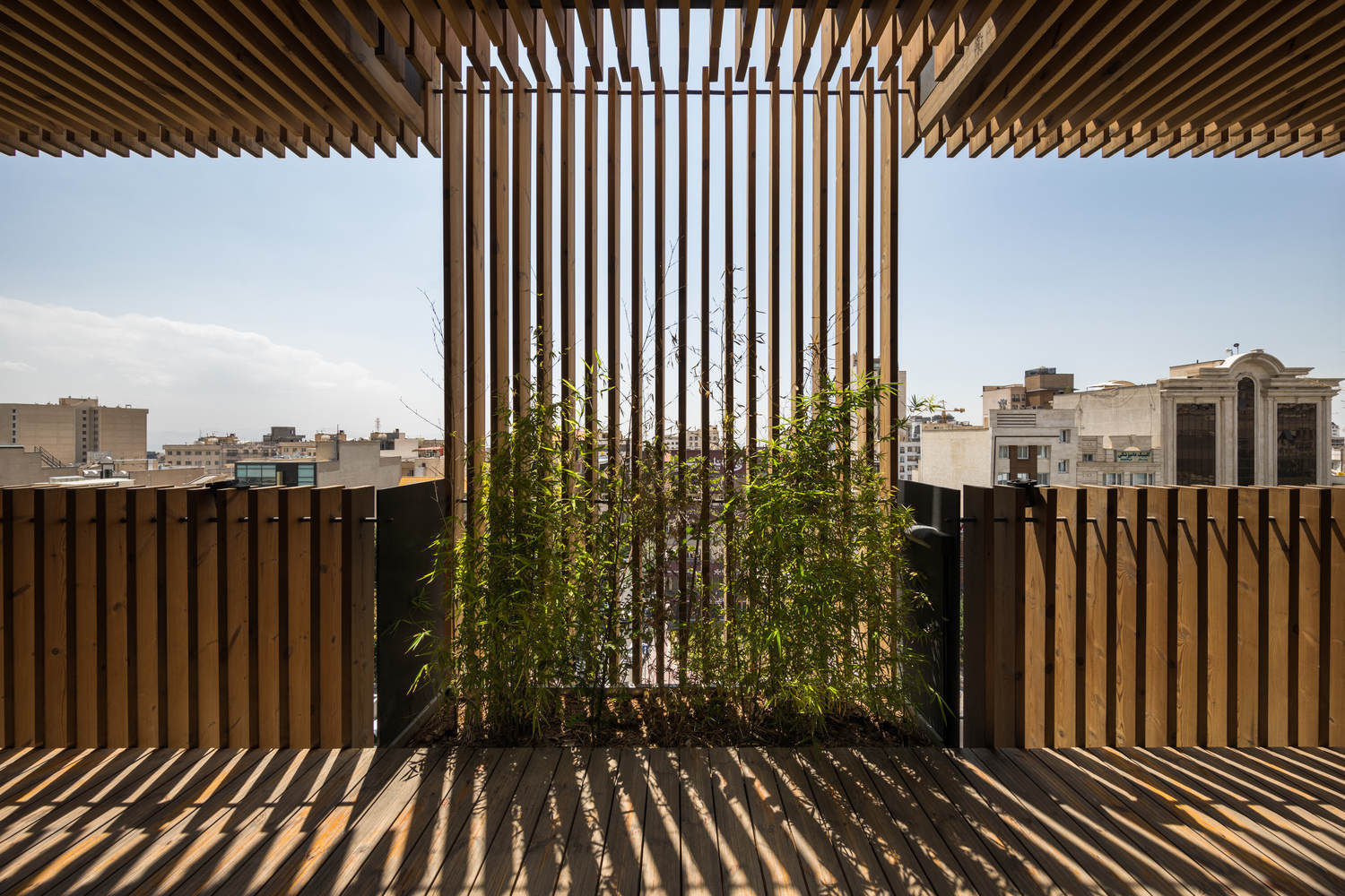 To achieve this, the boundary between the building and the city was defined by two distinct layers. The first, closer to the interior, consisted of large, transparent windows that allowed natural light to flood the space, enhancing visibility and openness. The second, external layer was semi-transparent, composed of wooden railings and steel planters, forming a permeable screen. This outer layer acted as a filter, regulating light and airflow while providing a sense of privacy for the occupants. The space between these two layers became an active zone—partially open, serving both functional and aesthetic purposes, and softening the transition between the building and its urban environment.
