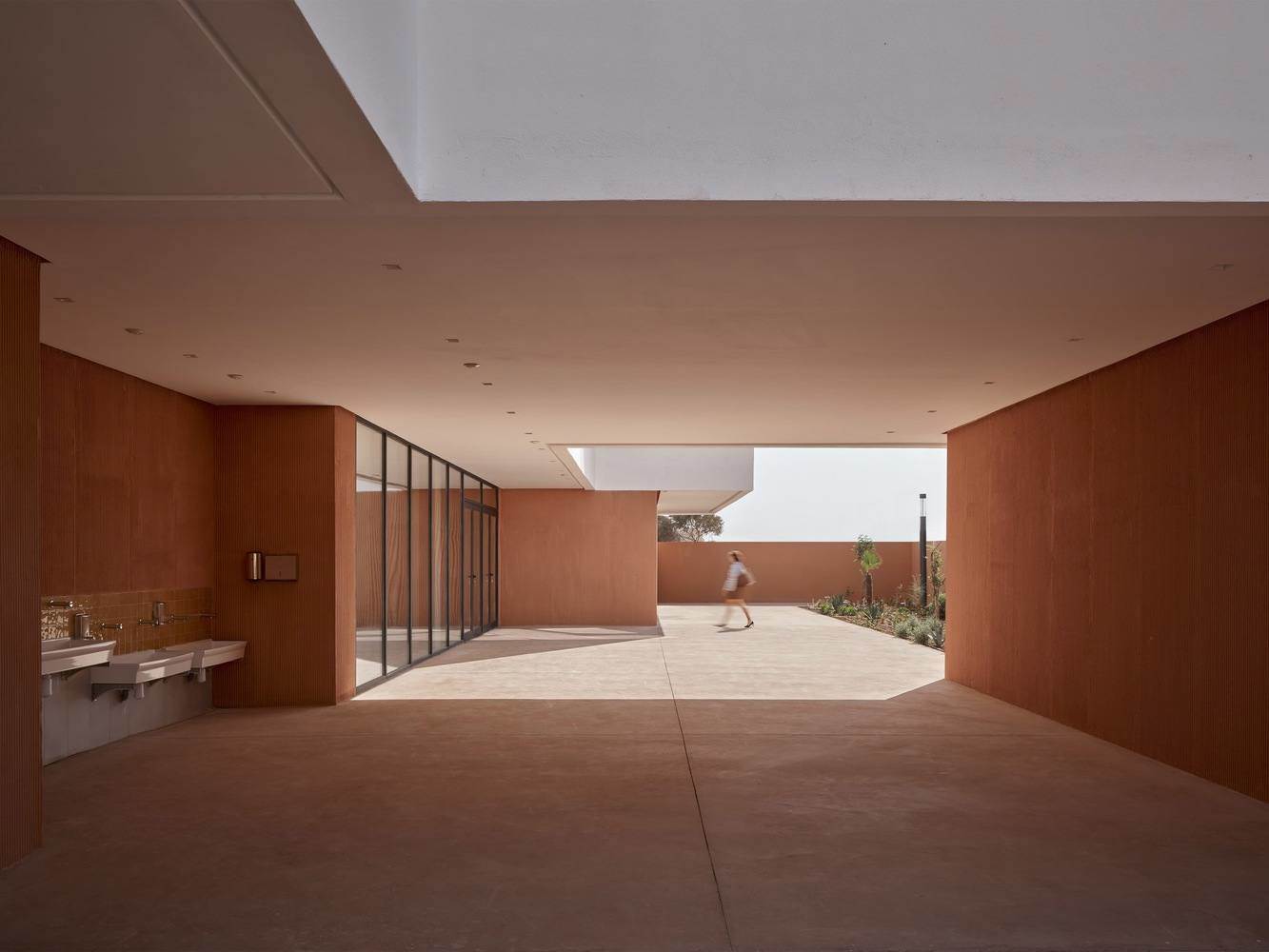 气候适应性设计:雅克·马若雷学校的设计充分体现了对当地气候的敏感性。通过将庭院作为多功能空间,项目实现了自然通风和视觉连续性,同时为不同年龄段的学生提供了必要的阴影区域。这种设计不仅提升了建筑的环境性能,还为用户创造了一个舒适的学习和活动空间。此外,项目利用当地材料和资源,如钢筋混凝土和天然饰面,进一步增强了其与摩洛哥背景的联系,同时也确保了建筑的耐久性和施工的高效性。