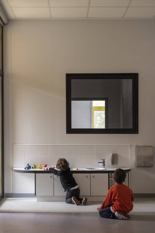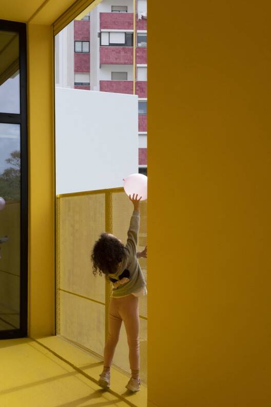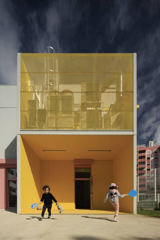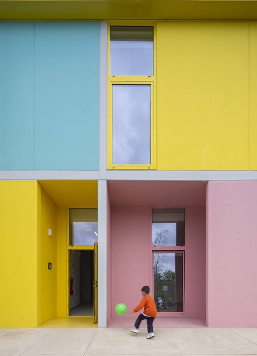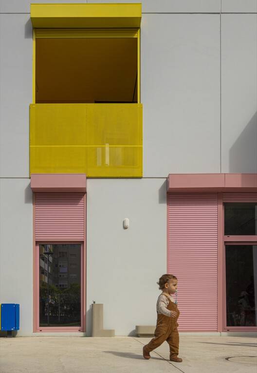 Text description provided by the architects. The buildings emerged in response to a public initiative project for the construction of kindergartens in various areas in Lisbon, through a competition launched by the Municipality. The starting point was a standardized solution that allowed for economic intervention, quick execution, and the creation of an identifiable image, making these facilities recognizable throughout the city. The proposal is based on the overlapping of structural modules in reinforced concrete, with a “U” section, shaping the building's surfaces. The choice of this material is linked not only to the modular configuration but also to the requirement evident in the competition program to ensure solutions of high and proven durability and low maintenance.