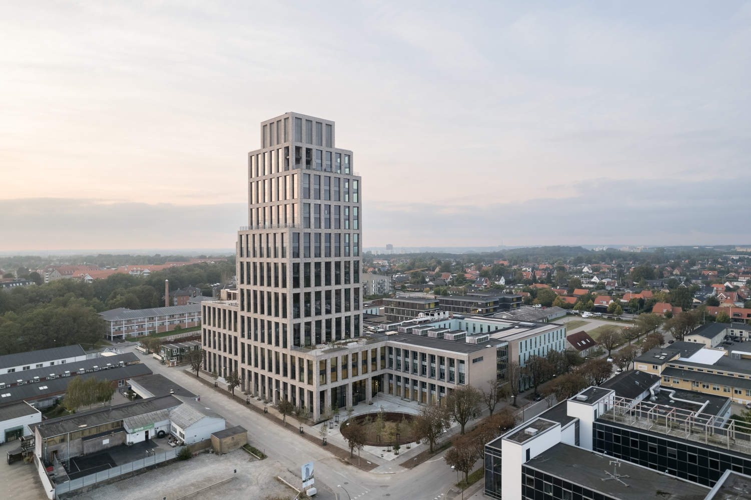 Text description provided by the architects. A new innovation hub for growth-oriented IT and tech companies offers a creative framework for ideas, synergies, and development. The 18-story building, INCUBA Next, designed by ADEPT and AART combines nearly 20,000 square meters of high-quality flexible office spaces with shared facilities and stunning views over the city. For over 30 years, the research park INCUBA in Aarhus DK has been a unique meeting point across it, clean tech, and life sciences. With close ties to the local university and the mission of fostering business opportunities for smaller companies, INCUBA bridges the gap between research, students, and industry. Recently completed, the 18 floors and nearly 20,000 m² in INCUBA NEextare dedicated to providing startups and scaleups in the tech industry with optimal growth conditions for SMEs.