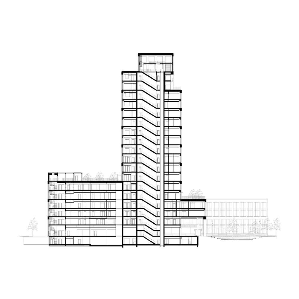 该建筑固有的灵活性支持了一个动态的工作环境,鼓励跨公司和学科的互动和协同作用。除了办公空间,INCUBA Next还提供餐厅、咖啡馆、非正式共享工作空间以及促进灵感和社区的会议和活动设施。该建筑已获得DGNB金牌认证,并配备了优化运营和能耗的先进解决方案。BMS系统基于开源,因此用户可以在新的环境中使用收集到的数据。MEP解决方案、消防策略和结构确保了空间配置随时间的最佳灵活性。