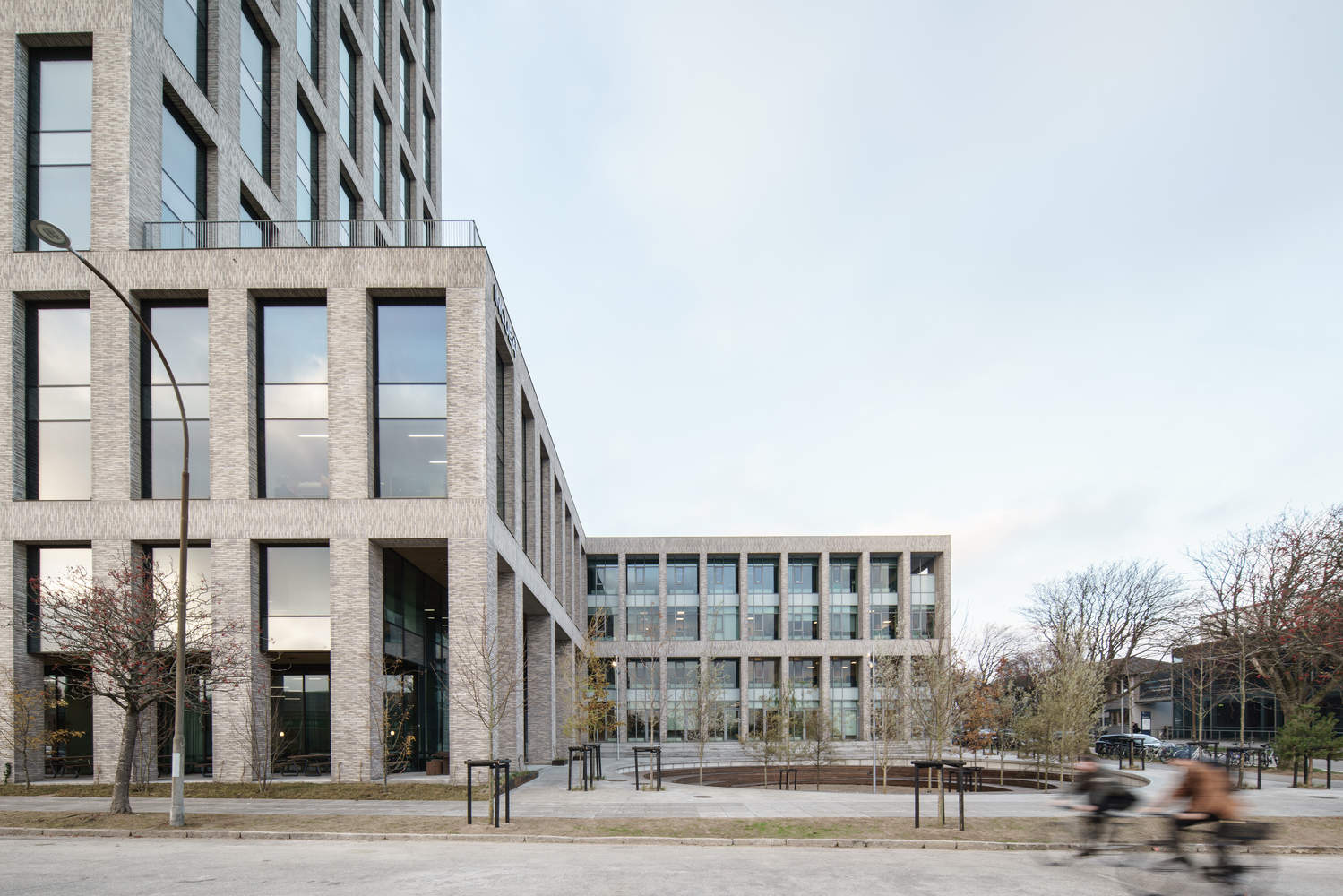 Instead of moving out to find more office space, INCUBA chose to transform and expand, building higher, but maintaining local anchoring and convenient access to the university, so that both new and old can strengthen the vision of a professional meeting point. Designed by ADEPT and AART, the building volume is thoughtfully scaled down into smaller segments to ensure that the building meets the scale within its surroundings as well as the existing complex. The light Kolumba brick in the façade underlines both solidity and tactility. Special emphasis has been placed on creating an open, active, and welcoming ground floor, which merges seamlessly with the existing INCUBA premises, parts of which have been renovated and transformed. In front of the building, a communal square enhances the identity of the neighborhood offering a green recreational space with local rainwater management. Up higher, landscaped roof terraces create semi-private oases that offer tenants room for reflection, while the building's height provides unobstructed views across Aarhus.