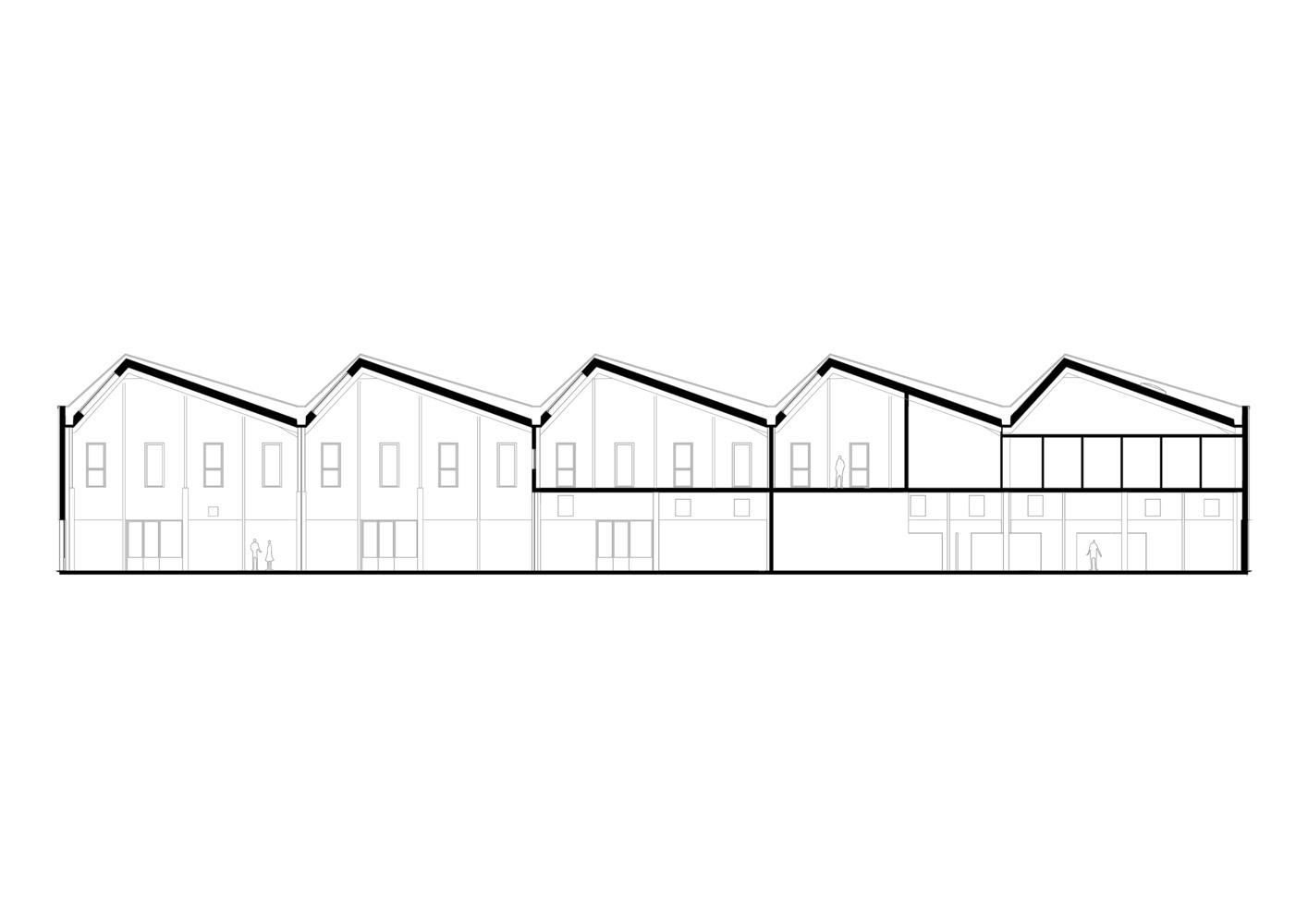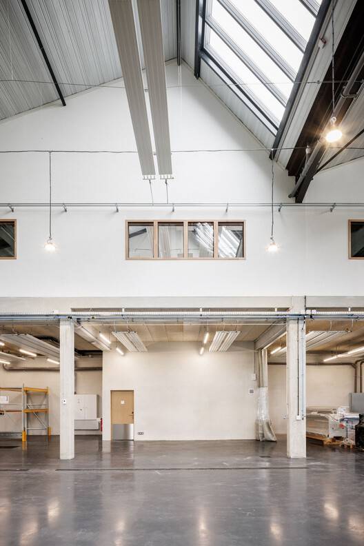 新的车间大楼位于地块的东北角,以形成沿Jallère大道的建筑正面,并使其通道更加独立。它由一楼的会议室和双层建筑贸易培训车间以及夹层上的教室组成。屋顶以棚屋的形式处理,参考了工业时代工厂的形象。玻璃屋顶提供充足的天顶光,使工作条件最佳舒适。