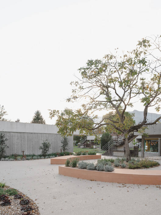 Text description provided by the architects. Our project originated from a single-phase international architectural competition organized by the Municipality of Locarno, which won unanimously by jury vote in August 2019. This design harmonizes the educational environment with its natural and urban context, promoting values of community, sustainability, and inclusion. The new structure redefines urban relationships between the existing school and its surroundings while clarifying spatial connections with the adjacent public housing. The added volume acts as an architectural backdrop, establishing the external boundary and strengthening the identity of the entire complex.