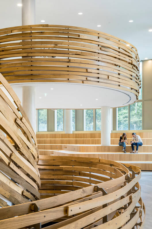 多尺度融合的创新设计:Reiwa Nexity总部大楼巧妙地融合了大巴黎地区的宏大尺度与地方性的细腻尺度。它不仅作为总部形象的象征,彰显出宏伟的气势,更与周边景观和既有建筑紧密交织。这种设计突破了传统建筑的孤立性,通过延伸和放大现有景观,创造出一种开放性与归属感并存的空间,使建筑成为城市更新中不可或缺的活力源泉,为快速变化的地区注入了新的生机与活力。