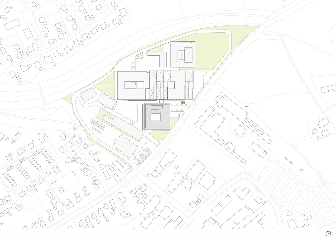多功能建筑的屋顶已经绿化,连同露台和众多出口,符合校园总体规划中提出的概念,未来将以温馨宜居的绿地为特色。
