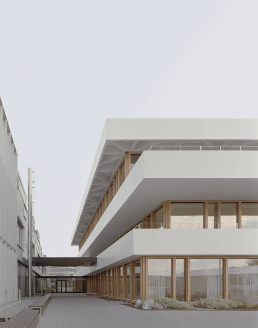 Text description provided by the architects. TRUMPF's corporate campus in Schramberg, northeast of Freiburg im Breisgau, has been growing steadily for over twenty years. With more than 1,400 employees, it is now the company's second-largest location, after its headquarters in Ditzingen, Germany. In line with Barkow Leibinger's master plan for the current and future expansion of the site, a first extension building was completed in 2000, followed by a new Development Center for Laser Technology in 2013 and a Production Building in 2017. As the latest component of this plan, a new multifunctional Tech Center has been in operation since March 2023, combining various uses under its roof: laboratories, offices, and conference areas, as well as a large campus restaurant that seats 400 guests. Due to the topography of the site and the laboratories' special requirements, a significant portion of the allocated space has been built underground or into the sloping terrain. Only the two upper floors are visible from the main entrance, giving visitors a glimpse of the symbolic tip of an architectural "iceberg" as they approach. In total, the new building comprises four levels with an area of more than 14,000 square meters.