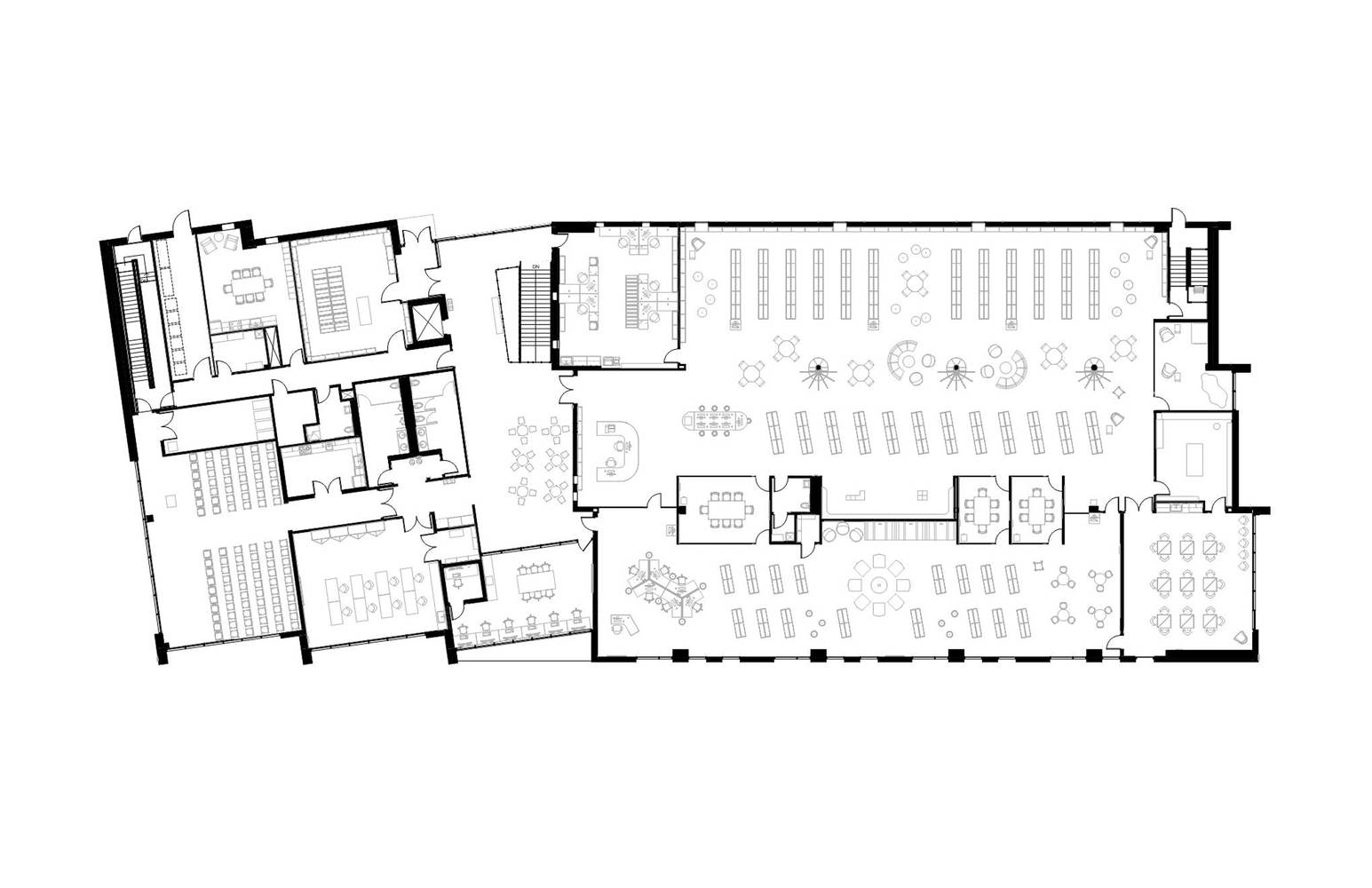 这个以社区为中心的图书馆不仅仅是一个书籍库,它还为每个年龄段的项目和活动提供了专门的区域,并辅以一系列供公众会面和协作的空间。音乐家们预订团体学习室一起练习;当地企业主使用安静的壁龛集中注意力,成年学习者使用计算资源;青少年参加纸杯蛋糕装饰比赛和诗歌大满贯;孩子们涌向故事时间,老年人学习如何录制播客。