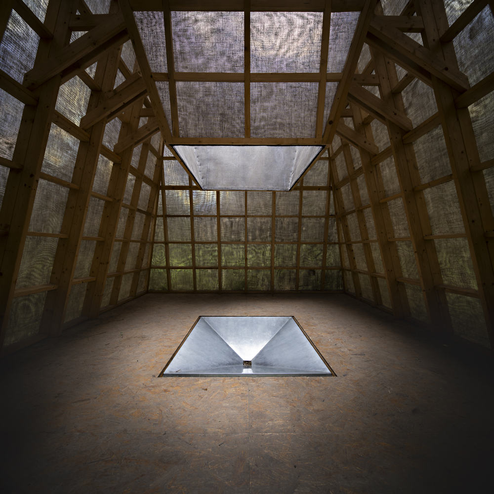 COMPLUVIUM是通过几何运算解决的,该运算基于一个5 x 5 x 5米的虚拟立方体,将一个中心空隙连接起来,其中向内倾斜的屋顶允许水收集在展馆的中心,就像罗马的“中庭”一样,或者就像塞内加尔南部的迪奥拉社区几个世纪以来用自己的家所做的那样,寻找必要的雨水收集。对这两个参考文献的引用综合了我们对“空间人工制品”概念的看法,在这种情况下,它通过水的激活除了沉思之外没有其他功能。