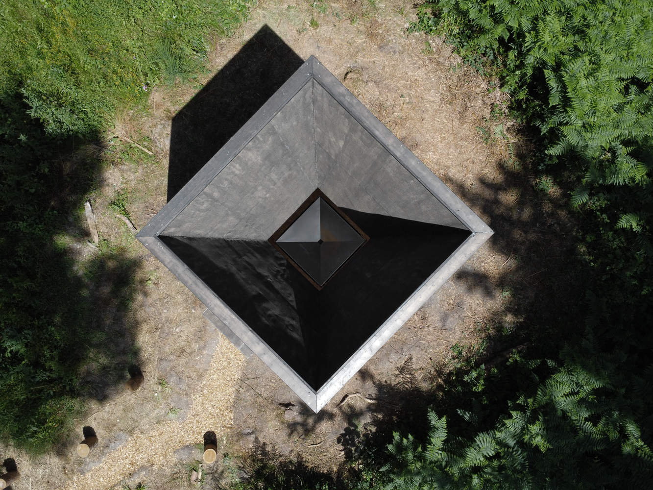COMPLUVIUM is solved in a geometric operation that articulates a central void based on a virtual cube of 5 x 5 x 5 meters, where the roofs sloping inwards allow water to be collected in the center of the pavilion, in the same way as occurred in the Roman ‘atrium’, or as the Diola community of southern Senegal has done for centuries with their own homes, in search of the necessary collection of rain. The allusion to both references synthesizes our approach to the idea of ‘spatial artifact’, where, in this case, its activation by means of water has no other function than that of contemplation.