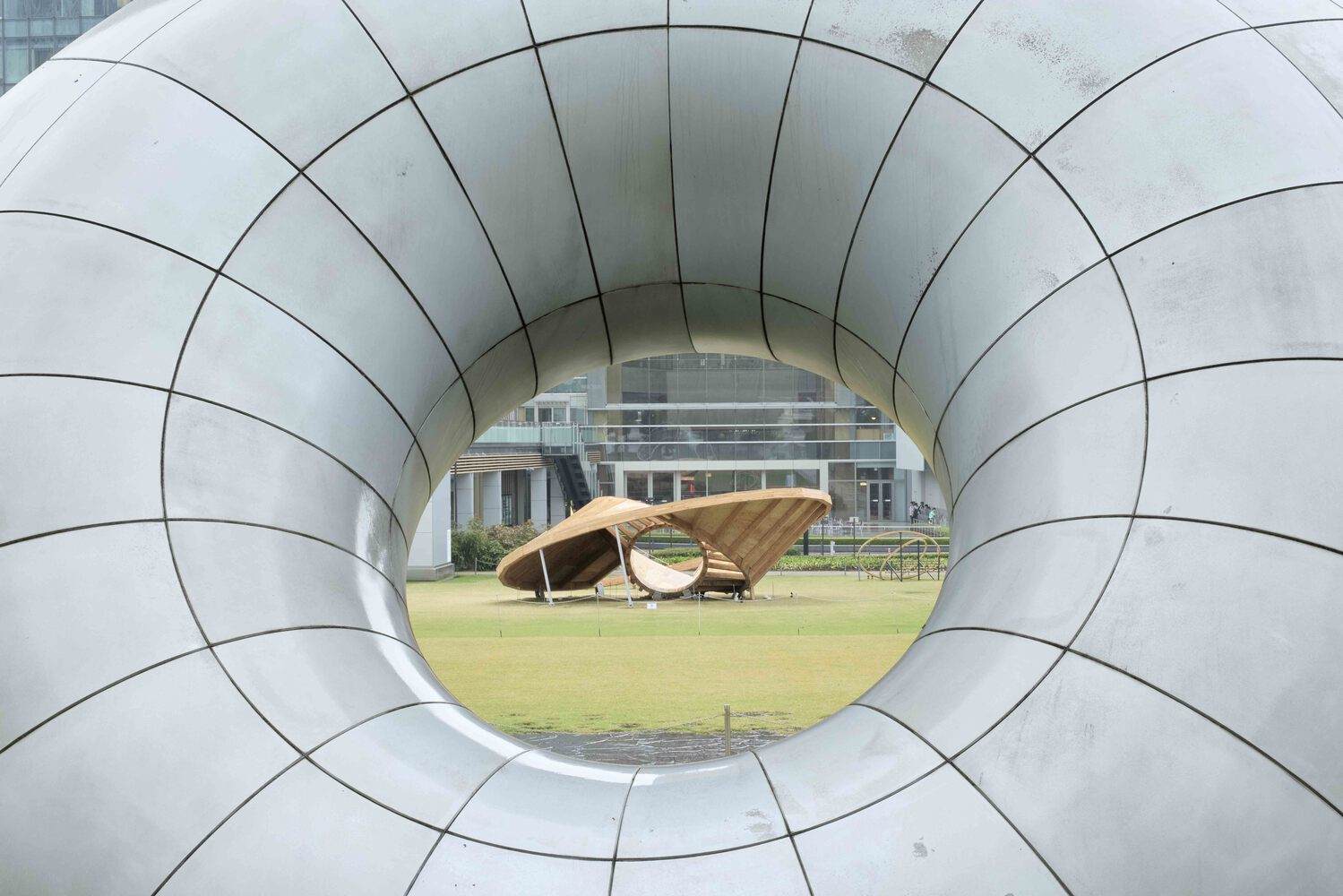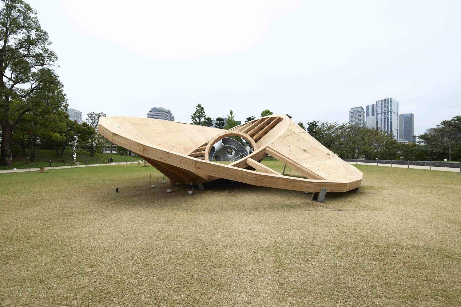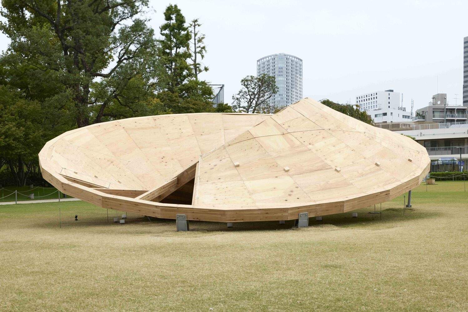 Text description provided by the architects. This pavilion is designed by Taichi Kuma for Tokyo Midtown DESIGN TOUCH 2024. The main structure is made out of 3 timber rings. They are varied in size such as 2m, 5m, and 10m. Each Ring is touching the ground and the plywood surface is created in between each ring.