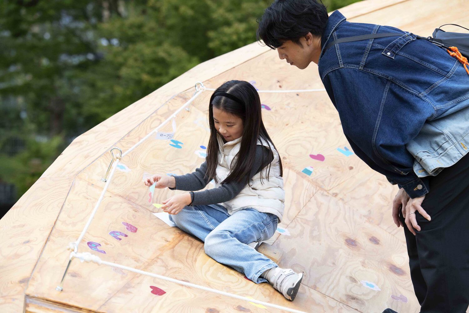 In this event, the sticker that represents human activity are delivered and visitors put them on the surface of LOGGING HILL. This is a public space but people can leave their personal log. This is the new approach to making visitors attachments to the public space.