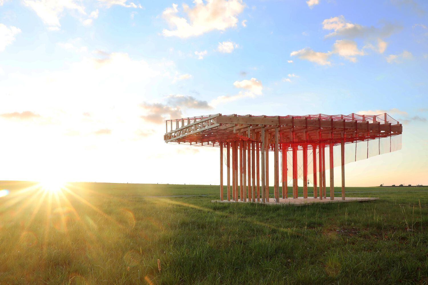 功能与形式的完美结合:该项目以其独特的形式和功能为伍德斯托克音乐节的历史场地增添了一抹亮色。露天甲板、不对称的柱子和网状屋顶结构的俏皮布置,不仅为各种有组织和即兴的活动提供了灵活的空间,还为游客提供了一个放松、野餐或阅读的场所。这种多功能的设计,使得Curtain Call不仅仅是一个艺术装置,更是一个充满活力的社区空间,满足了不同人群的需求,体现了建筑设计的人文关怀和实用性。