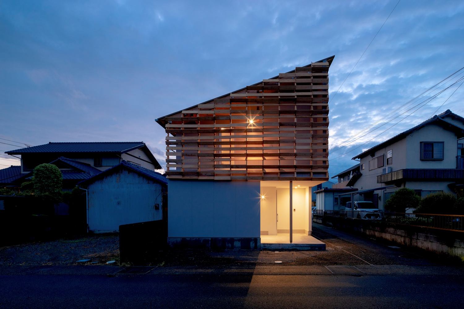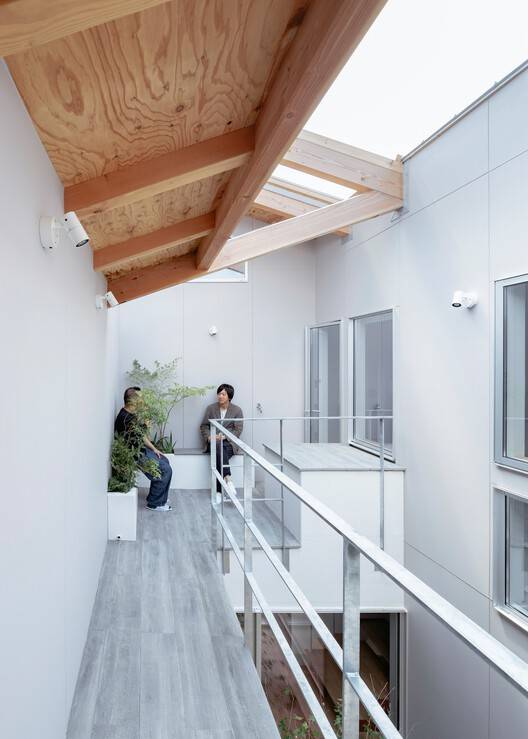 Text description provided by the architects. This is a housing project along the old Tokaido road. Tokaido Road is one of the most important Five Routes connecting Edo (Tokyo) to Kyoto and Osaka, of the Edo period in Japan. Old townscapes remain along this historical road. The exterior continues with the old Tokaido's wood-covered texture. There is a lot of traffic on the Tokaido side, but rather than blocking the outside world, the wooden panels at different angles are intended to reflect and drown out outside sounds. The orientation of the panels was arranged using a parametric design, and the angles were adjusted so that they changed little by little. Each panel was adjusted so that a large flow would be created when the entire panel was put together.