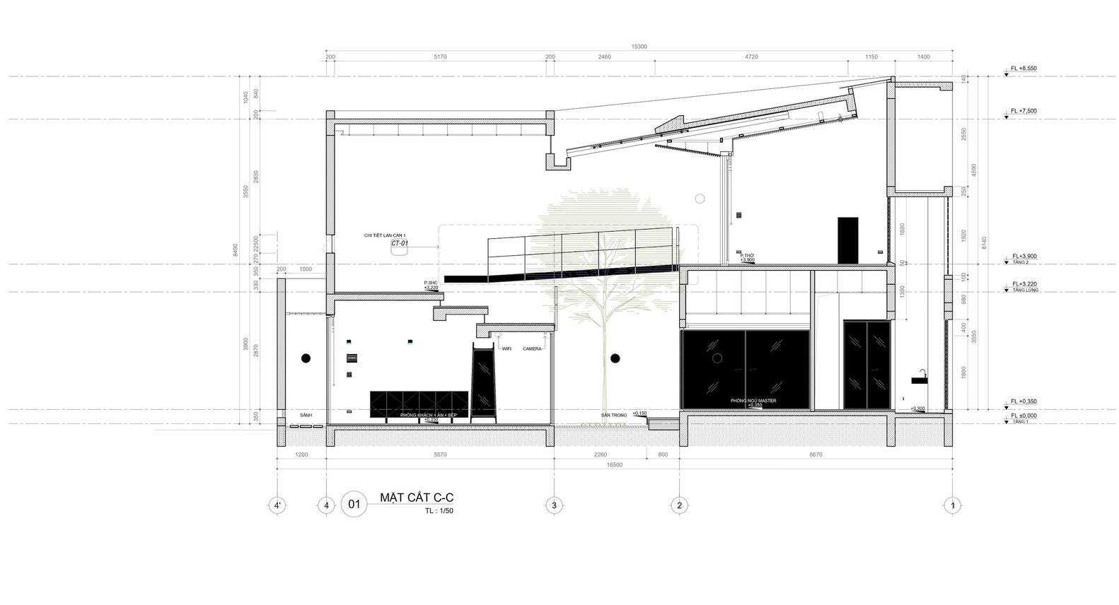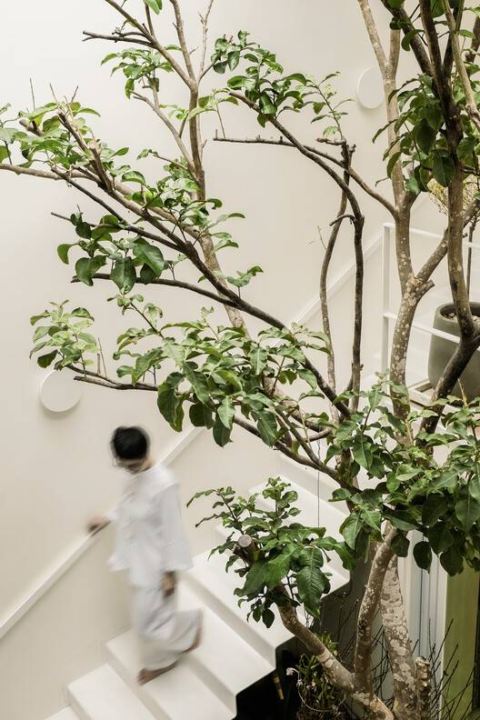 绿色连接(Om Cay)-空间-绿色-空间:室内绿色空间的创意空间条件,以开发居住在房屋中的分层连接空间。所有活动都围绕着绿树,让家居空间温暖舒适。互联设计中的纹理和节奏为睡眠空间和客人创造了灵活性和照明。特别是,房子前面有一棵芒果树,所以它是绿色的,从房子的内部到外部,有更多的空间与白色混合,一个简单的整体设计,突出了房子里空间与绿树之间的联系。