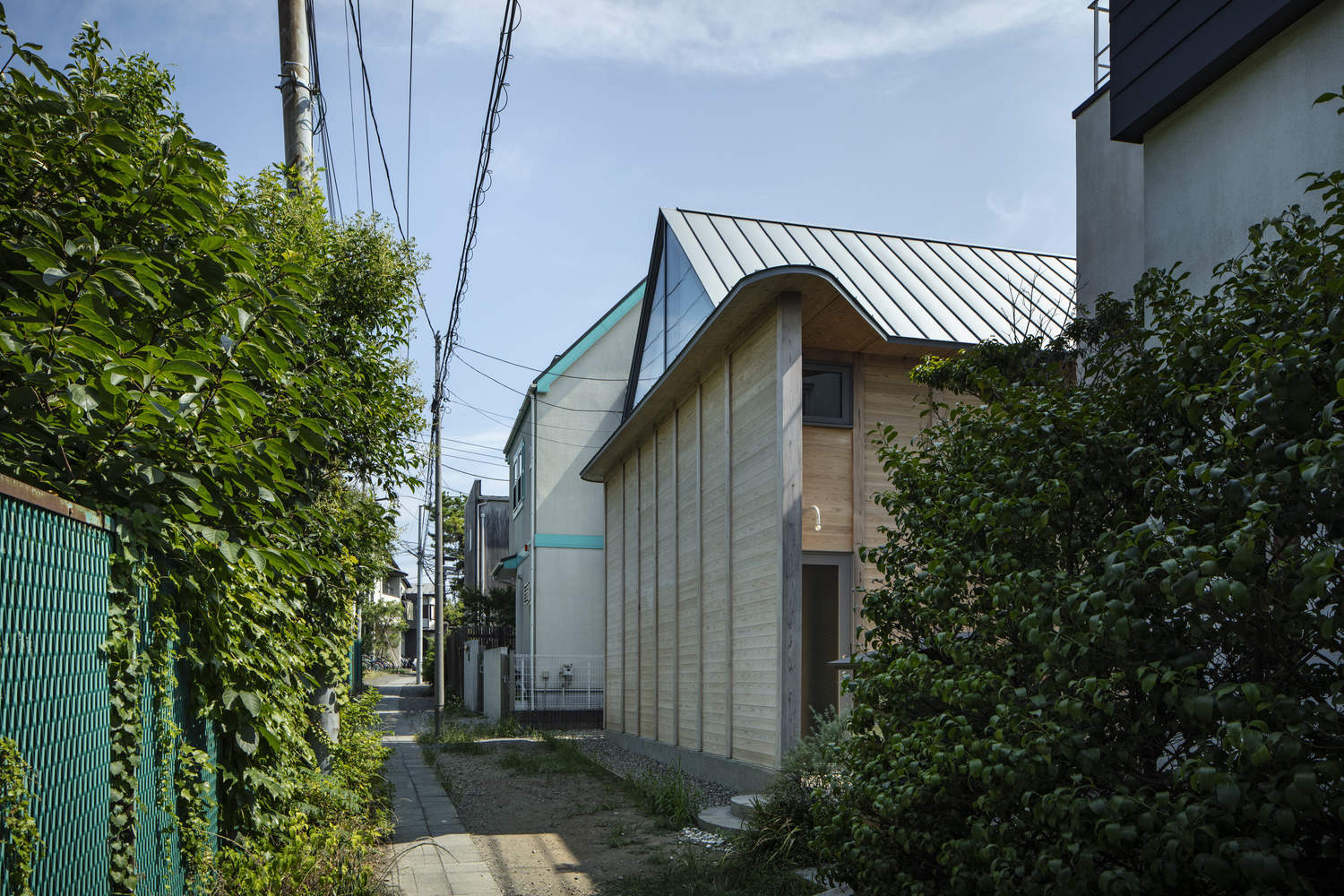 Kite-Shaped House Reflecting Site Conditions - Built on an irregular plot in Kamakura, this house features a distinctive kite-shaped floor plan. It strikes a balance between privacy and openness by using walls and approaches to blur the boundaries of the site, creating rhythm in the surrounding streetscape.