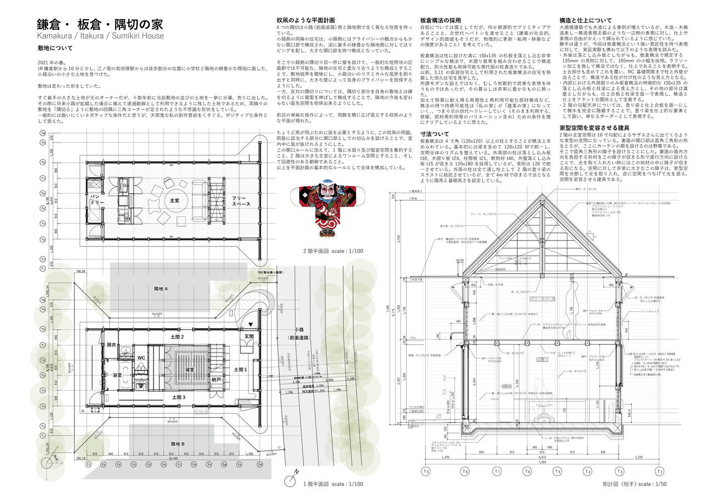 The sustainable Itakura construction method, which allows for easy relocation and reuse of materials, is integral to the design.