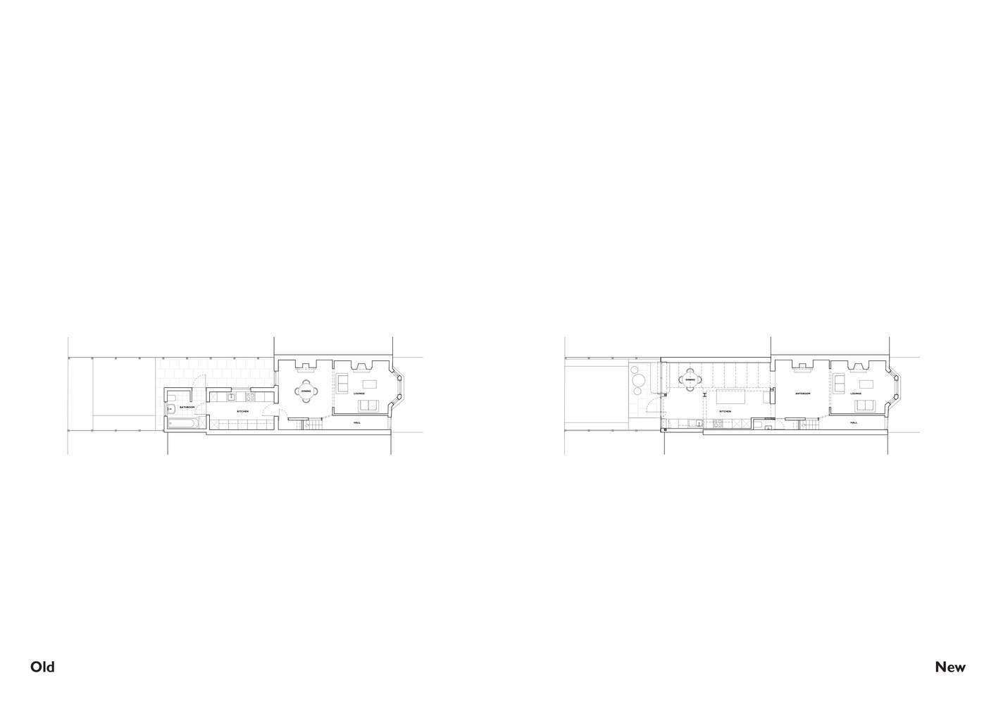 空间与自然的融合:该项目巧妙地将传统维多利亚式住宅与现代生活需求相结合,通过大型滑动窗、旋转门和全长度屋顶灯的设计,将自然光线引入室内,同时将空间向室外花园开放。这种设计不仅解决了客户对自然光的需求,还模糊了室内外的界限,营造出一个既亲密又开放的居住环境,体现了对自然和生活品质的追求。