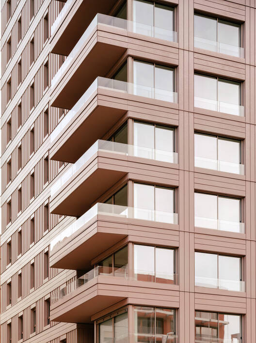 功能与美学结合:项目在功能设计上极具创新性。建筑通过一个巨大的两层城市基座连接,基座内包含双面大厅和自行车存放区,巧妙地建立了街区与景观之间的视觉联系。立面设计则与艺术家合作,将圣乌恩的标志性红砖与“皮肤建筑”概念相结合,展现出独特的美学效果。同时,建筑的开口设计基于生物气候原则,优化了热性能,体现了功能与美学的完美结合。