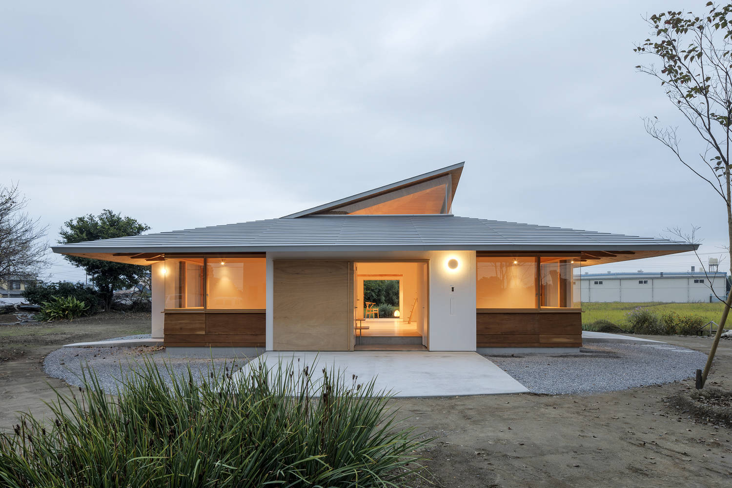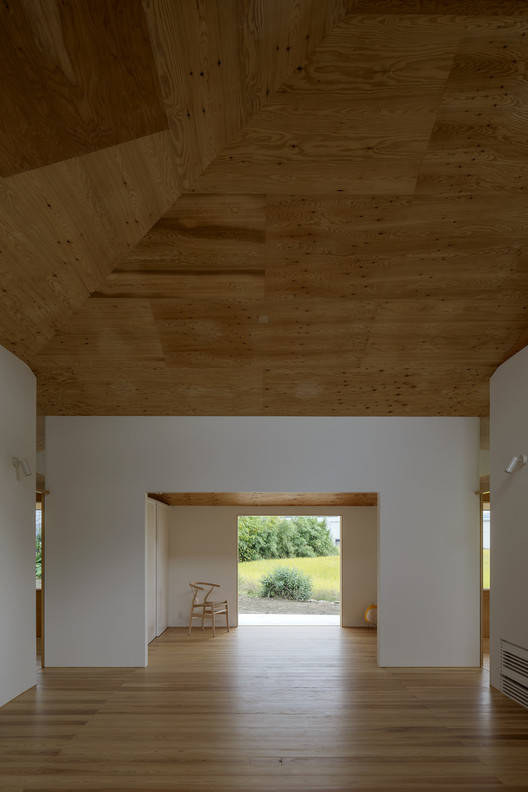 Text description provided by the architects. The site is located in a suburban agricultural area, with rice fields on the east side, a shrine surrounded by forests on the south side, a residential area on the west side, and fields on the north side.