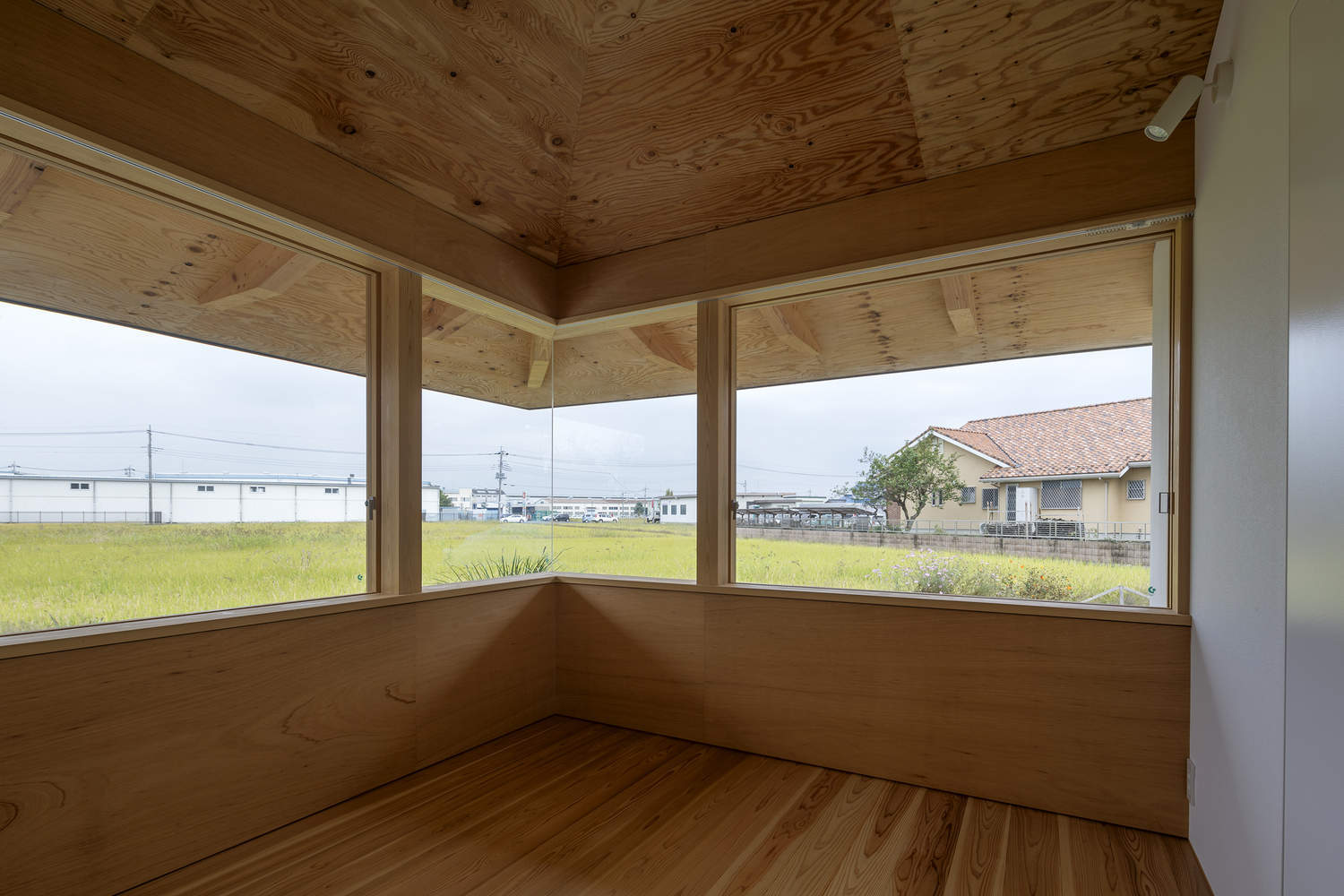 Each private room are located at the four corners of the building, so the landscapes you can see are different. And by designing a deep under-roof space made of the same material as the interior, we created a space that feels wider than the real area. On the other hand, when you open the door, you can always connect to the central common space, and you can feel the connection of your family wherever you are.