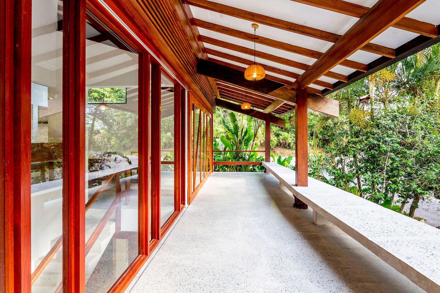 这些区域与沿着房屋延伸的大型阳台融为一体,旨在将花园与室内空间连接起来。
