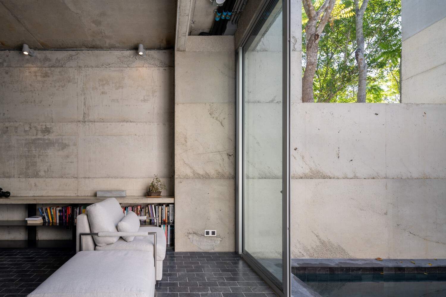 由于持续时间和时间的原因,“混凝土表皮”用于将内部和外部空间连接在一起。混凝土浇注在砖墙的顶部。混凝土表皮足够坚固,可以风化。因此,随着时间的推移,外墙和内墙都是一样的。它在内部和外部空间之间建立了联系。