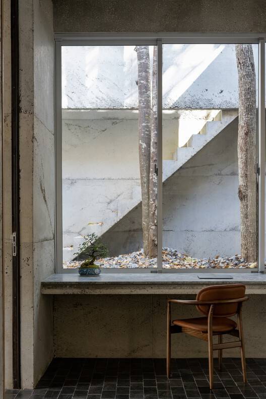 • The "Inner Court," has a counter and table around it because its ground-level height is 0.70 meters. That height is suitable for making a working table or counter, so functions around it like a dining and working area.