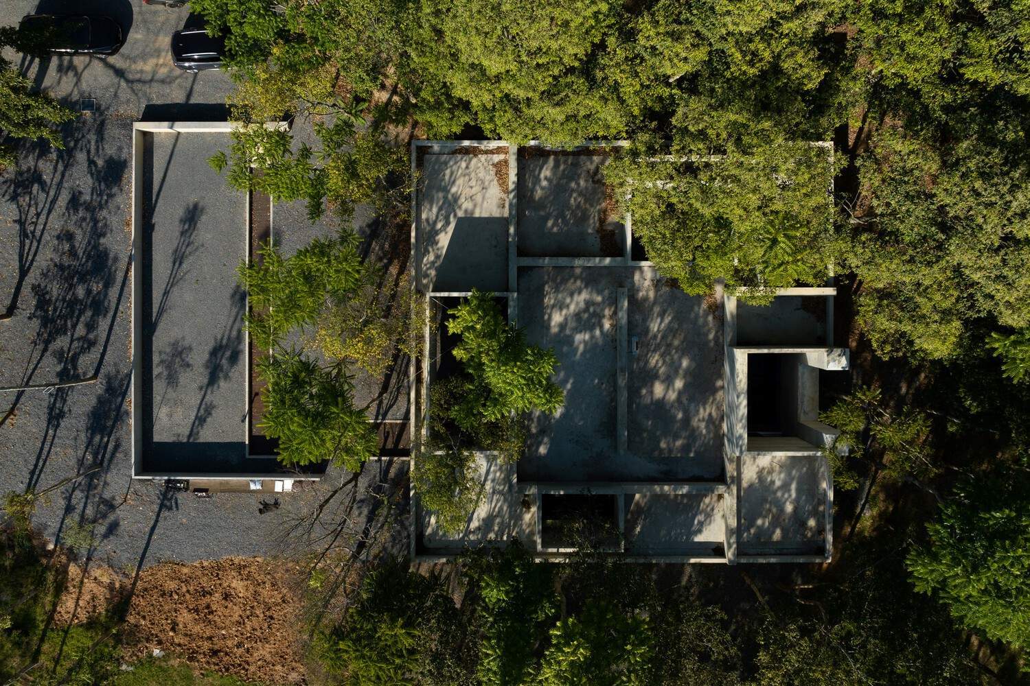 材料运用与时间美学:项目中“混凝土表皮”的使用体现了建筑的时间美学。混凝土被浇注在砖墙顶部,形成坚固且耐候的外立面。随着时间的推移,混凝土表皮会逐渐风化,使建筑的内外墙呈现出统一的质感。这种材料选择不仅增强了建筑的整体性,还赋予了建筑一种随时间演变的美感,使其在岁月的洗礼下愈发自然和质朴。