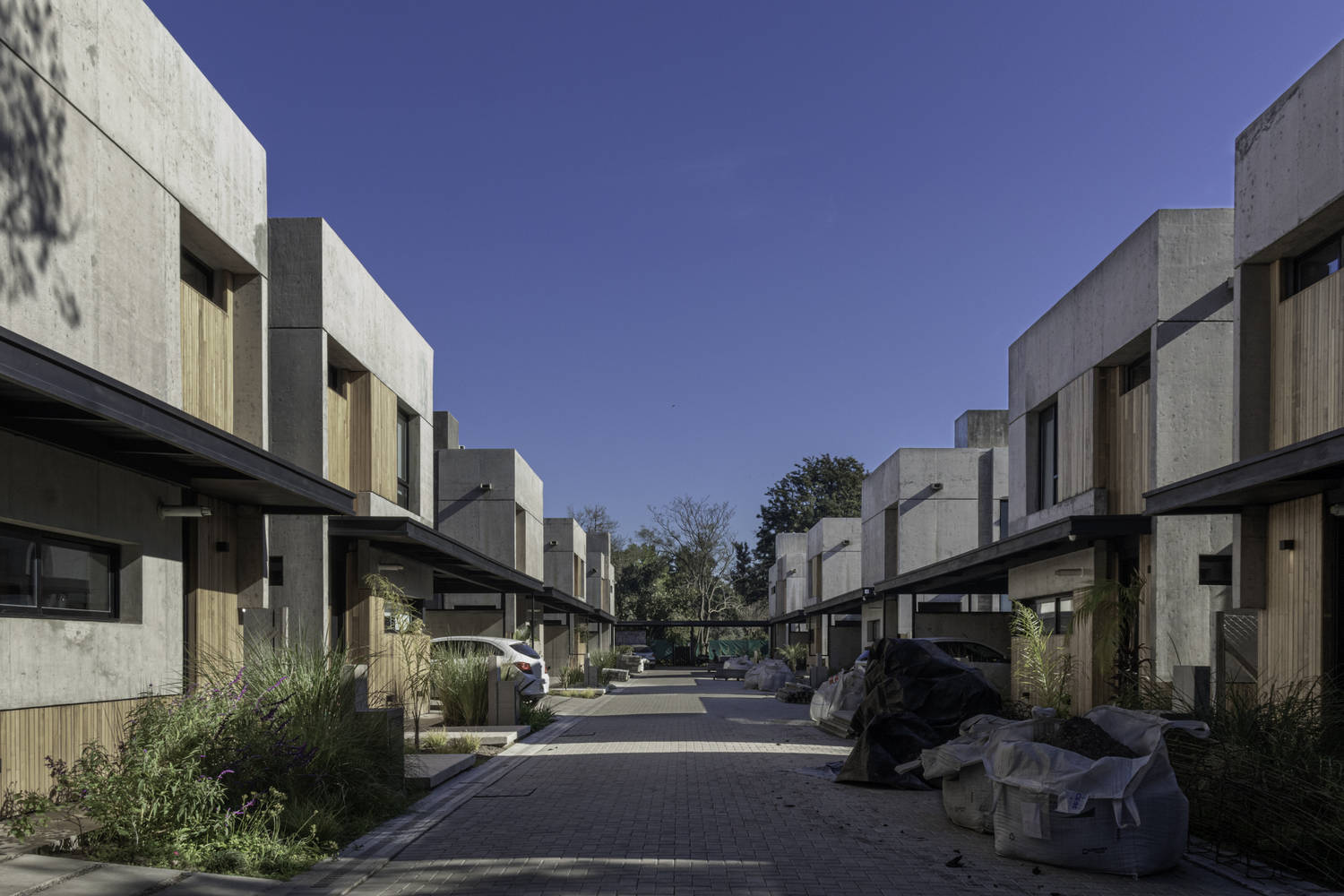 The houses are oriented alternately in order to receive the best sunlight opening towards their private parks. The units on the front line of the street invert their orientation to cover the best views while keeping the row of trees in their parks, which works as a natural separation from the vehicular street.