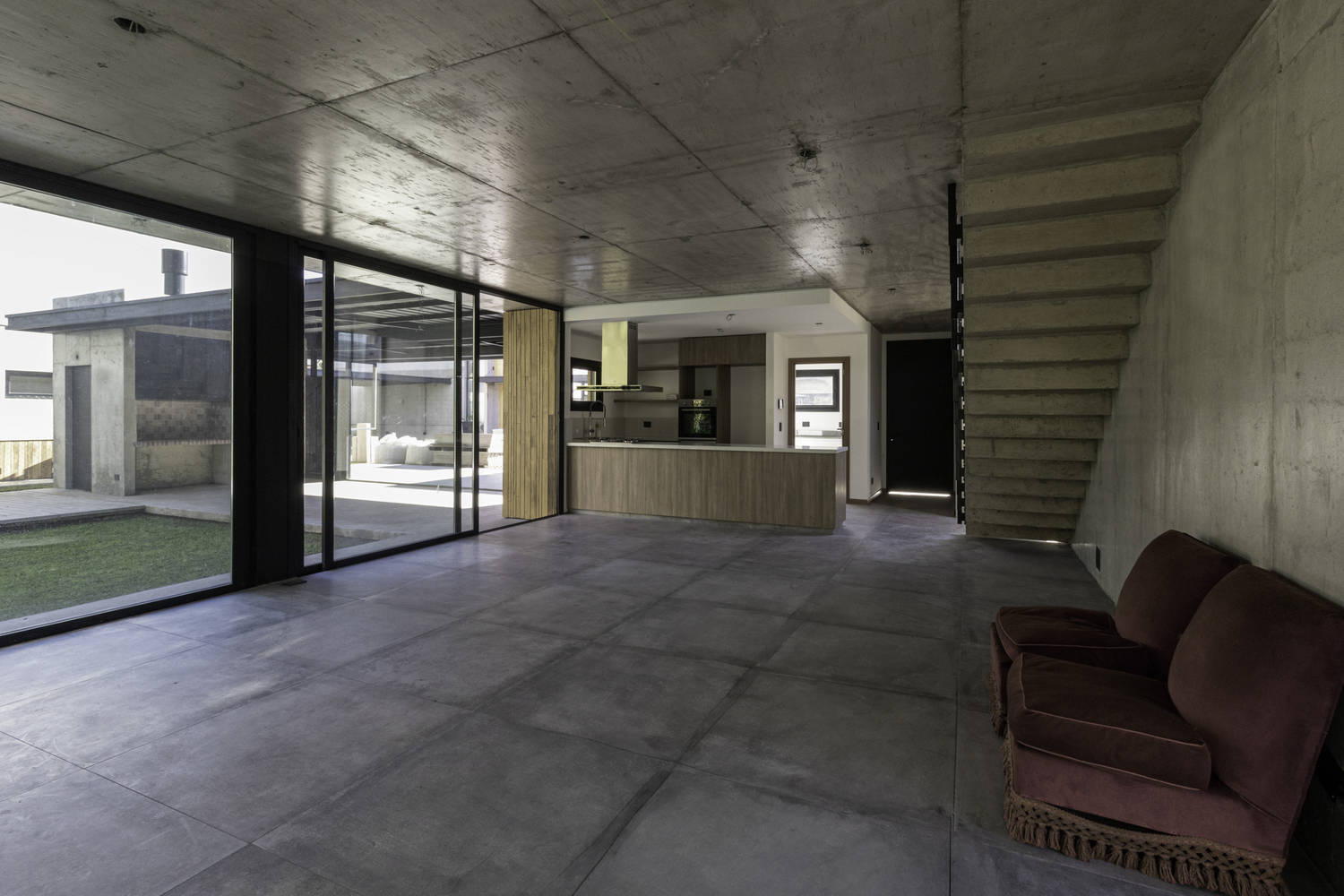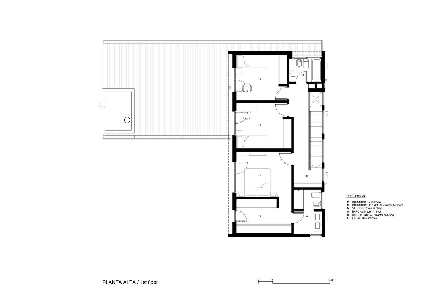 The language of the housing complex is given by a reinforced concrete structure that works as an exterior enclosure as well as an assembly of the facades. From a formal point of view, the reinforced concrete is used to generate hanging planes that lighten the impact of the material while allowing the ground floor to open towards the park and, at the same time, protect the private spaces of the first level. The facades are complemented by the use of wood as cladding, giving the entire set a greater warmth and a greater harmony with the forest environment.